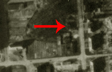 Laut Zeitzeugenbericht soll ein Feuerlöschteich an der Bremer Straße, hier ganz oben links im Bereich des kleinen Gebäudes und dem flachen Objekt links daneben existiert haben. "Dort, wo jetzt die Kirche steht". Es scheint aber dort kein Teich erkennbar zu sein. Der Zeitzeuge weiter: "Ich kann mich auch irren, es ist lange her. Es kann auch der Teich östlich am Krähenbusch gewesen sein". Damit wäre dann der hier vorgestellte Feuerlöschteich am Pfeil gemeint.