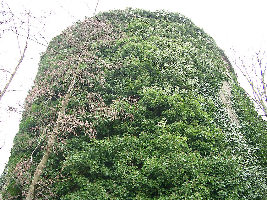 Stürme haben in den vergangenen Monaten fast sämtliches Efeu vom Turm gerissen. Auch die Konsolen am Westeingang sind mittlerweile beschädigt.