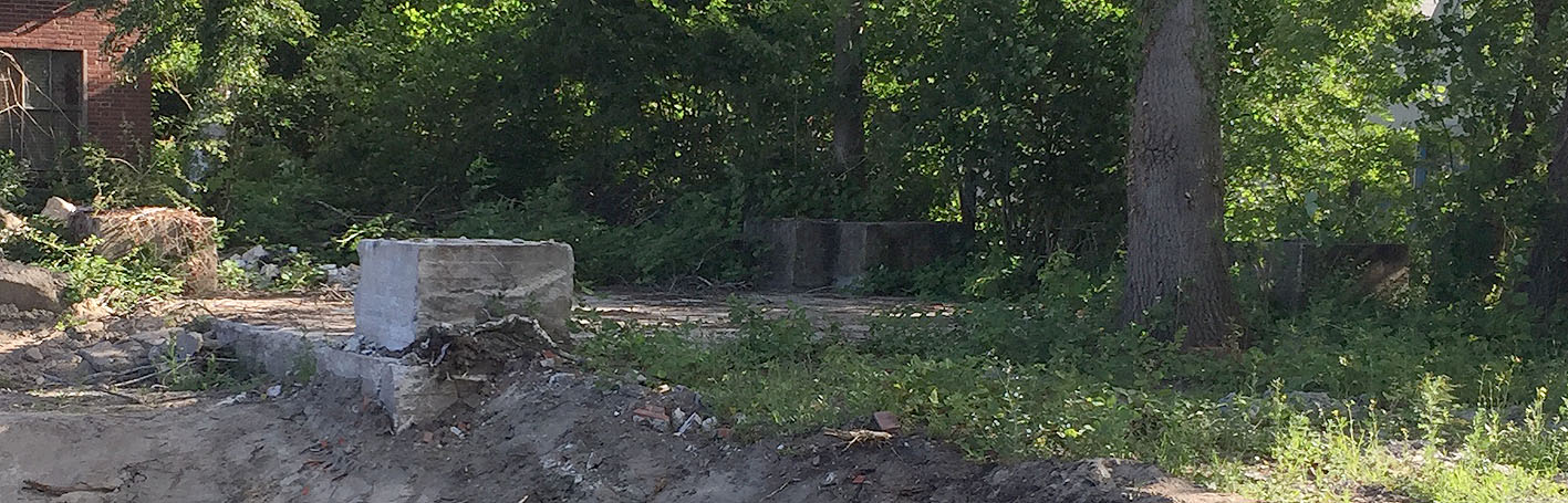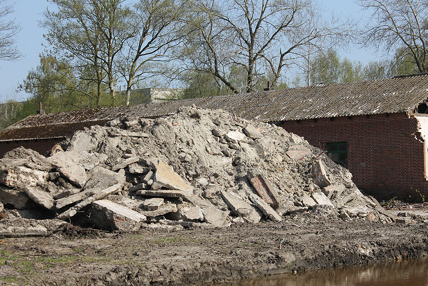 Der Westbereich der Gebäudeanlage ist abgerissen worden. Der Ostbereich dürfte erhalten bleiben. Wiederum östlich daran angrenzend befinden sich die Sockel.