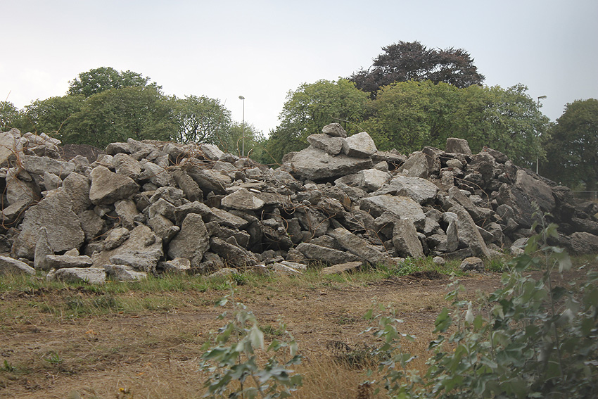 Das diesjährige Osterfeuer findet übrigens genau auf der noch immer großteilig existierenden Fundament- Zerschellerplatte des abgerissenen West-T 750 statt...