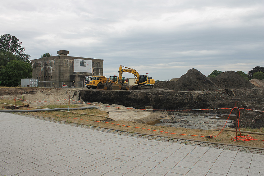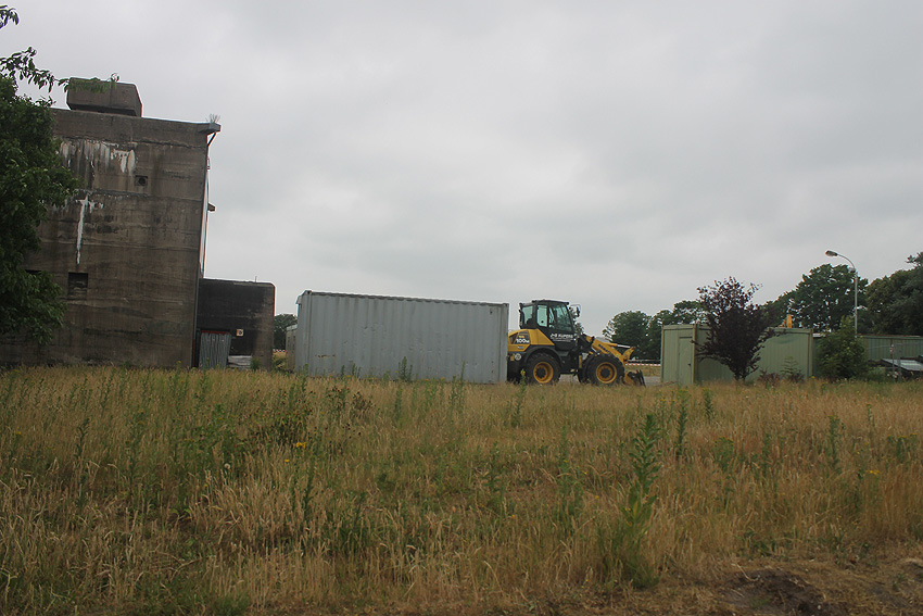 Das Gelände rund um den Bunker wurde nun abgezäunt. Die Arbeiten zur Dekontaminierung des umliegenden Bodens sind angelaufen. Erdbodenbereiche wurden bereits umgeschichtet. Auch der Bereich des noch immer vorhandenen Fundamentes des anliegenden ehemaligen Öltanks "Grodenfähre Nord" wurde freigeräumt. Das Ring-Fundament ist nun klar ersichtlich.