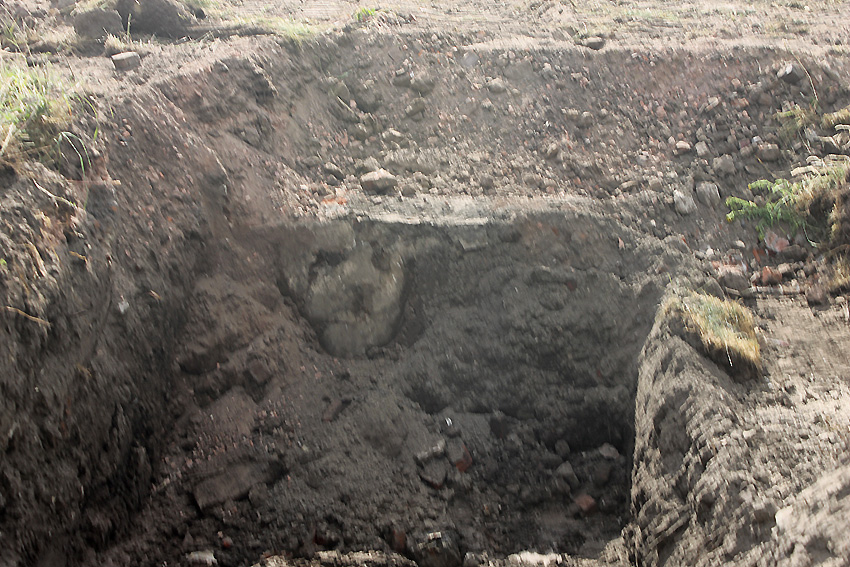 Dies ist der aktuelle Stand auf dem Gelände. Historische Mauerwerksstrukturen (in Verbindung mit dem ehemaligen Öltank) treten ans Tageslicht. Alte Ölleitungen wurden geborgen.