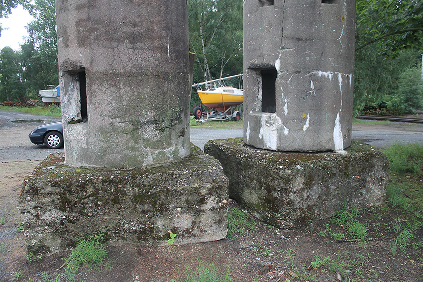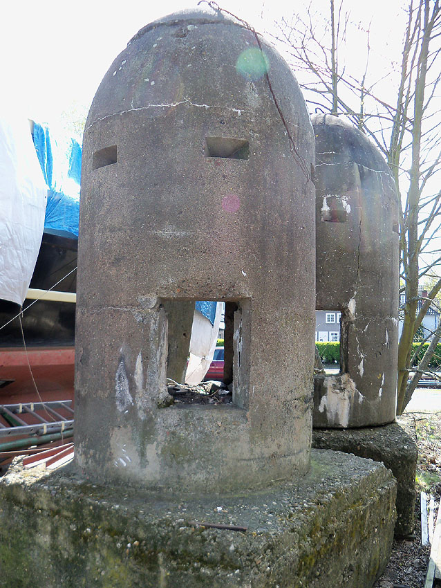 Zwei von ehemals drei abgelagerten Westermann-Splitterschutzzellen am Braunschweiger Hafen (die dritte Zelle war ohne Fundament):