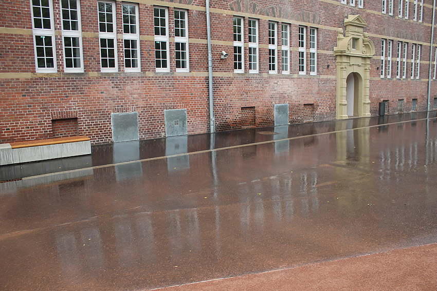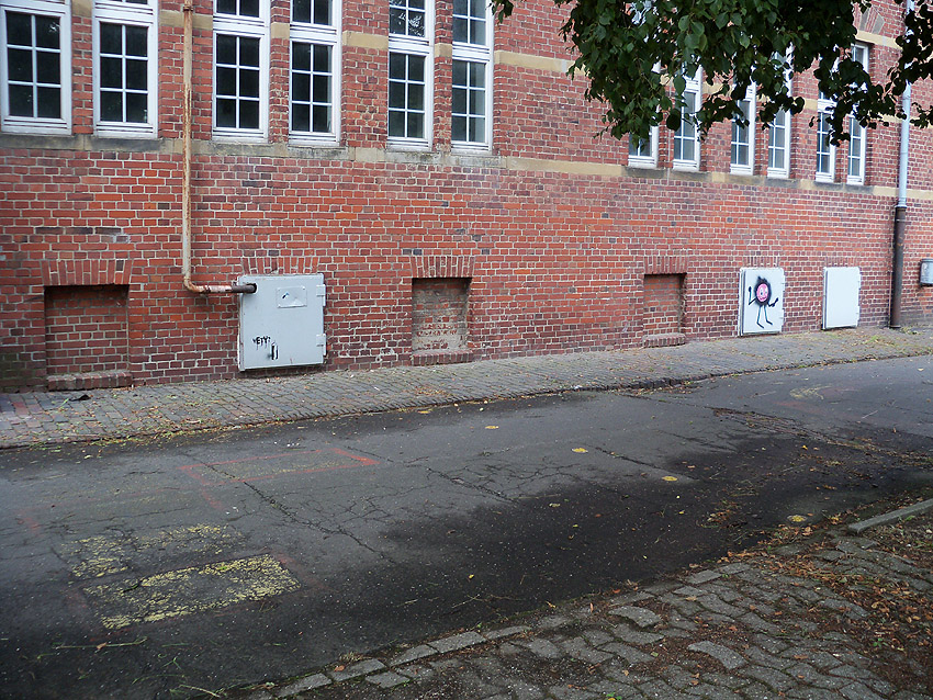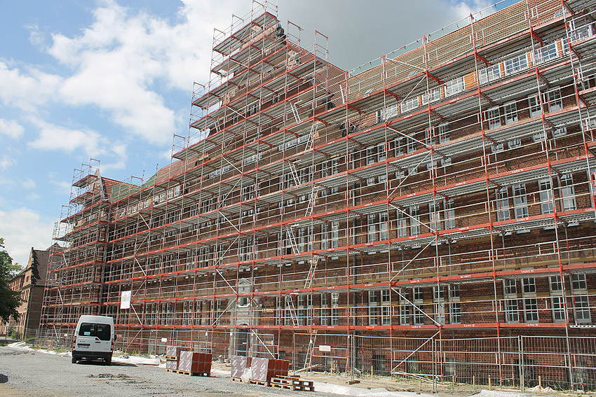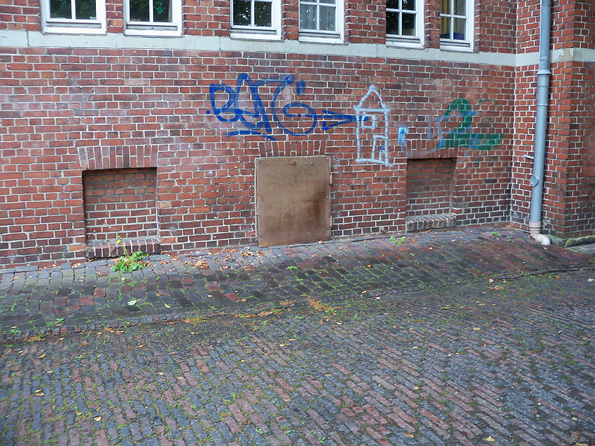09.07.16: Hier finden zur Zeit Sanierungsmaßnahmen statt für die baldige Nutzung des Gebäudes als Grundschule. Die 10 noch erhalten gewesenen LS-Klappen sind bereits abgebaut worden und durch herkömmliche Stahlplatten ersetzt worden. Wir berichten weiter.
