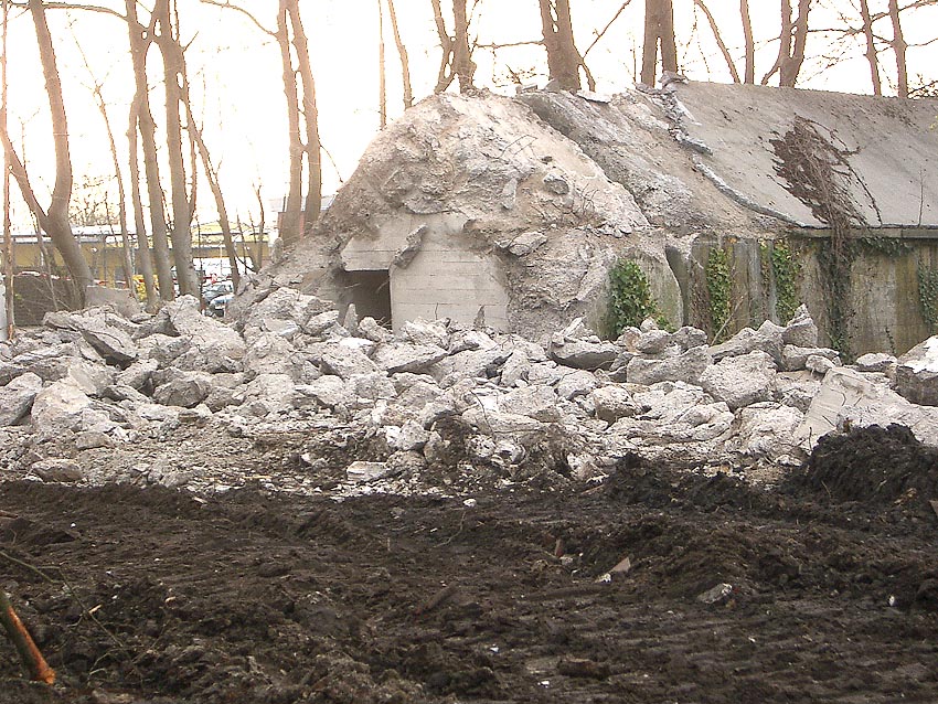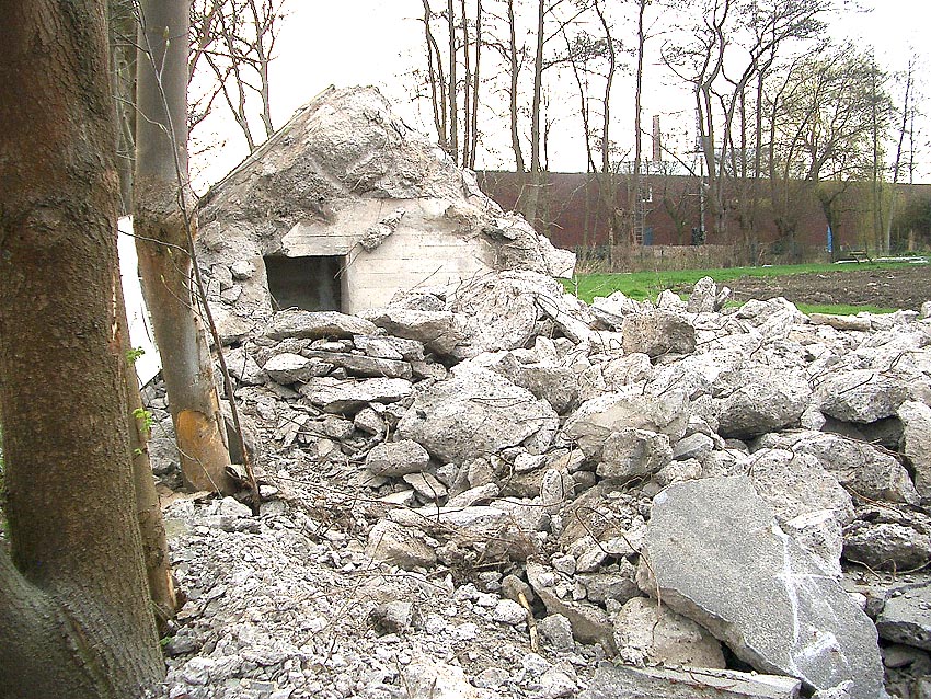 02.03.06: Seit gestern, dem 1. März läuft der Abriss, welcher eine bis zwei Wochen dauern soll. Zusammen mit dem Bunker wird auch das Wohnhaus östlich dem Erdboden gleichgemacht. Ein nahes Autohaus will hier seine Gewerbefläche erweitern. Wir bleiben dran!