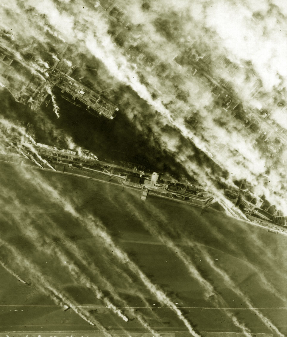 Luftangriff auf Wilhelmshaven im Herbst 1944, Wilhelmshaven ist vernebelt. Hier eine Dialeiste. |