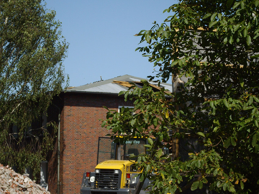 Banter Kaserne: Der Schutt wurde weiter sortiert und der Schuttberg ist bis auf 8 Meter Höhe gewachsen. Die Fundamente der Hauptgebäude wurden entfernt. Hier Wie nun bekannt wurde, sollen das Stellwerk und das Trafogebäude an der Emsstraße am Montag, 21.09.09, abgerissen werden. Zumindest das Trafohaus war der Banter Kaserne als Stromversorgungsverteiler zugehörig. Beide Gebäude befinden sich extern des Kasernengeländes an der Emsstraße. Letzte Impressionen: Hier Wir berichten Montag zeitnah.