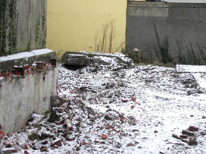 Der kleine Erdbunker im Hof an der Ecke Mitscherlichstraße und Bremer Straße wurde zur Jahreswende abgerissen. Er musste einer Geländeumgestaltung / Neubau weichen: Hier |