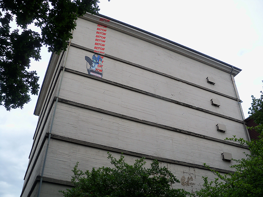 Hochbunker Banter Weg: Das Wandgemälde ist vollendet, das Gerüst wurde bereits abgebaut. Eigentlich sollte am heutigen Tage die offizielle Einweihung sein, diese wurde jedoch auf Anfang August verschoben. Das Bild, das zudem einen leichten 3D-Effekt aufweist, ist gelungen und wertet diesen Bereich Wilhelmshavens geschmackvoll auf. Zudem wird der Bunker hierdurch in seiner Erscheinung als "Hausbunker" in Szene gesetzt, da er nun von der Straße aus wirklich wie eine Art Haus erscheint. Hier