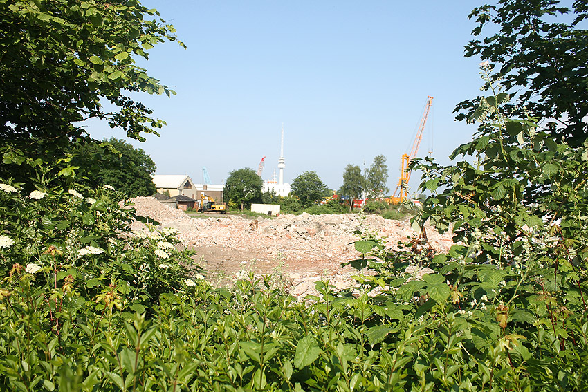 Der betonierte Deckungsgraben An der Junkerei / Potenburger Weg wurde bekanntlich vor zehn Jahren abgerissen. Einige Zeit wurde das Gelände dann durch das nahe Autohaus genutzt und stand später länger als Brachfläche da. Jetzt wird hier eine neue TÜV-Station gebaut. Hier Bilder der damaligen Begehung Hier Bilder des Abrisses Hier und Hier