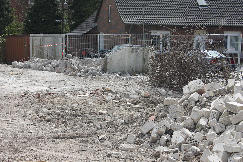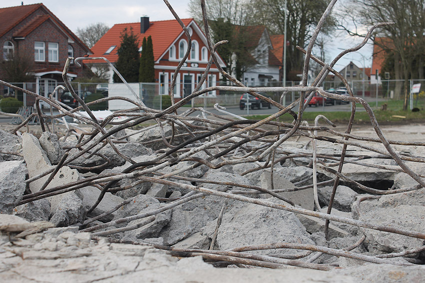 Schutzbau Rüstersieler Straße 67: Der Abriss ist weiter fortgeführt worden. Entweder heute, oder am gestrigen 19. April... Die Decke des Bauwerkes ist fast zerstört. Hier