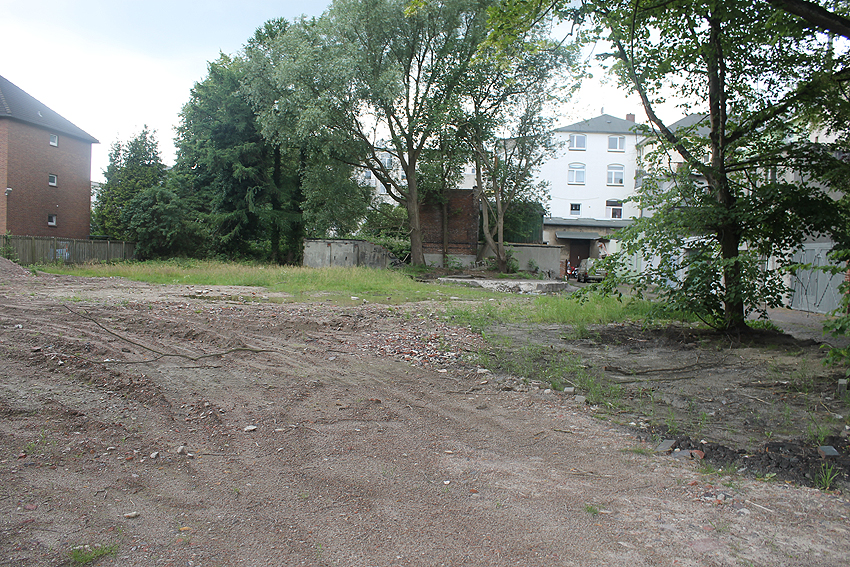 Allerstraße - Wir haben heute nachgeschaut: Auch ein Jahr nach dem Abriss der Schule keine Bauaktivität. Die Bodenplatte des ehemaligen Rundbunkers ist weiterhin vorhanden, das Grundstück verwildert immer mehr. So wie in der Montage oben wird der damalige Rundbunker in etwa ausgesehen haben... Hier