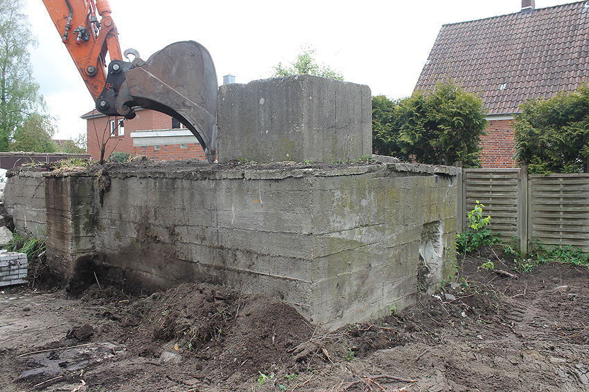 Bunker Banter Ruine. Die Zerstörung der Deckenverstärkung samt Wasserspeier (einer ist bereits beim Aufprall auf den Boden vernichtet worden) und Lüftungsturm (komplett zerstört) hat am 16. Juni begonnen. 18. Juni 2020: Heute erschien in der Wilhelmshavener Zeitung ein Artikel bezüglich der am 16. Juni begonnenen Abrissarbeiten am T 750 Banter Ruine. Wir berichten zeitnah über die weitere Entwicklung und fügen die ausführliche Fotodokumentation zügig hinzu! Weitere Informationen in Kürze.