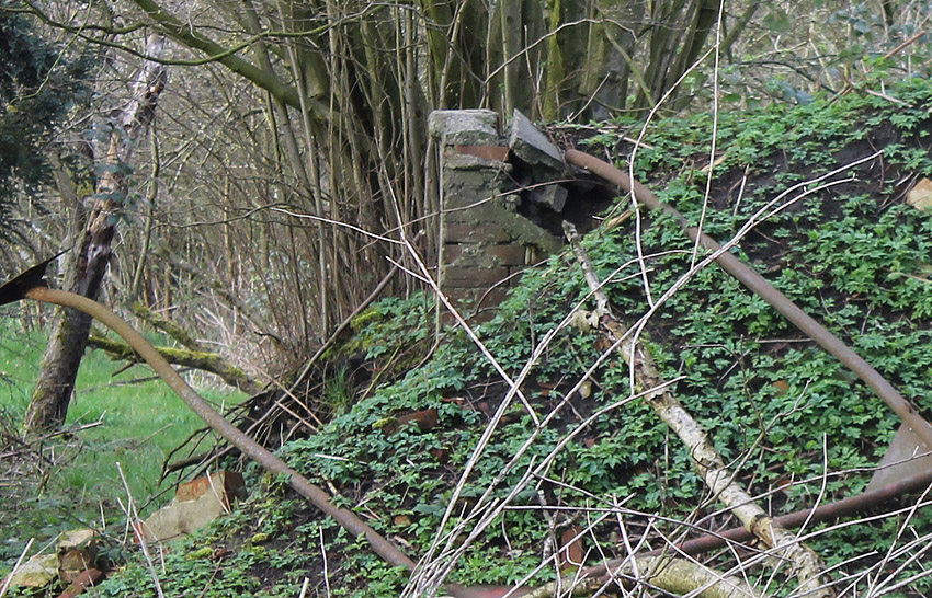 Erdbunker-Neuentdeckung trotz Corona: Hessenser Weg 31 / zwischen Grundstück B und C - Der kleine Erdschutzraum wurde zu Kriegsbeginn als Splitter- und Trümmerschutz für das anliegende, noch heute vorhandene größere Wohnhaus errichtet. Neben dem Luftschutzraum befand sich ein weiteres kleineres Haus, welches nach dem Krieg (wohl bereits 1946) entfernt wurde. Auch für dessen Bewohner wurde die Anlage erbaut. Etwas weiter östlich befindet sich ein "Behelfsgebäude", das nach der verheerenden Explosion im Marine-Artilleriedepot gegenüber auf der anderen Kanalseite (1943 durch Luftangriff) eigens für obdachlose Bürger aus der Nähe errichtet worden war. Der kleine Schutzbau steht nach Hinweisen eines Anwohners unter Wasser. Heute (wie auch seinerzeit teilweise) ist hier Kleingartengelände. Hier Danke an den freundlichen Leser für den Tipp und an den netten Anwohner für die Informationen!