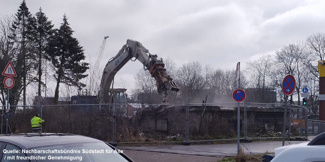 Mellumstraße 5: Der dortige Behelfsbunker (Bunkergarage?) wurde nun unvermittelt kürzlich oberirdisch komplett abgerissen. Das Gebäude nördlich davon, mit konkretem Verdacht auf Zugehörigkeit zur Anlage, ist noch erhalten. Hier