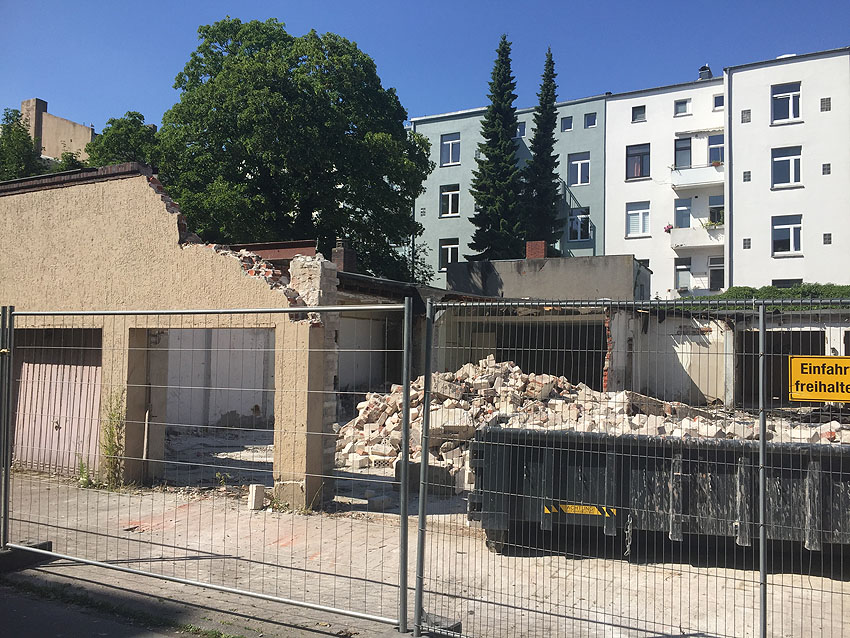 Wie befürchtet wurden nun im Juli 2023 große Teile der Garagenbebauung zusammen mit dem Gebäude der ehemaligen Druckerei Wallner in der Marienstraße abgerissen. Der anliegende Rundbunker ist (noch...) unangetastet. Ebenso der massive LS-Kellerbereich des Gebäudes. Er wird aber wohl alsbald entfernt werden. Wir berichten bei jeder Entwicklung weiter. Hier