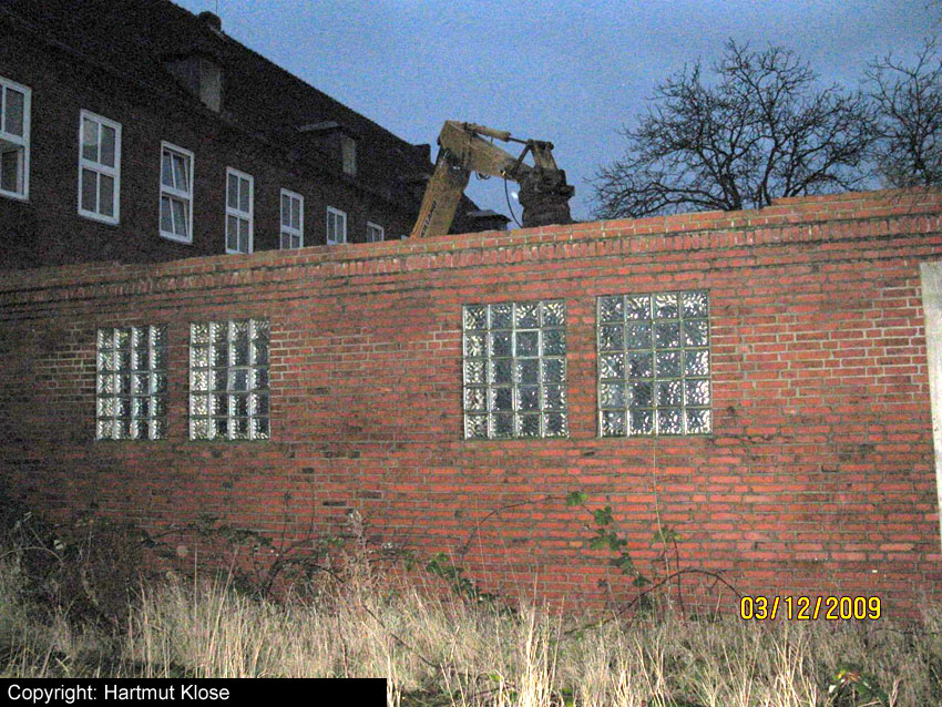 Obwohl für 2010 vorgesehen, beginnt nun Anfang Dezember 2009 bereits die Entfernung des Restbereichs der Banter Kaserne. Wir berichten von nun an weiter ausführlich über den Abriss, erstmals ab dem 04.12.09!