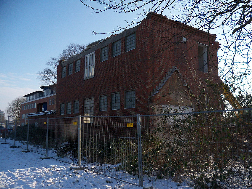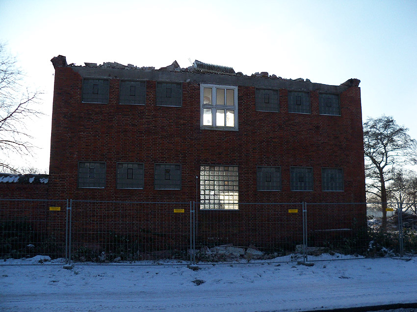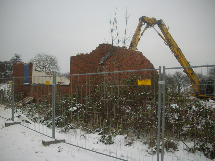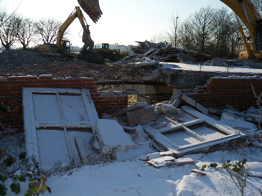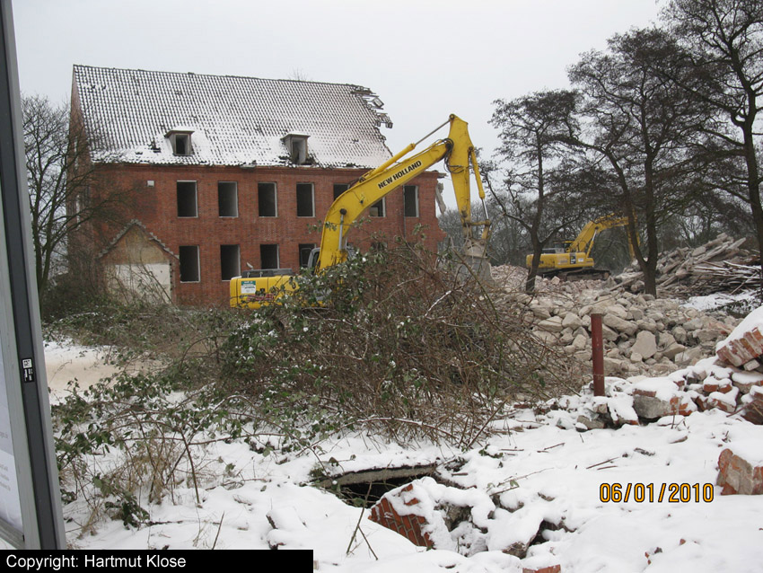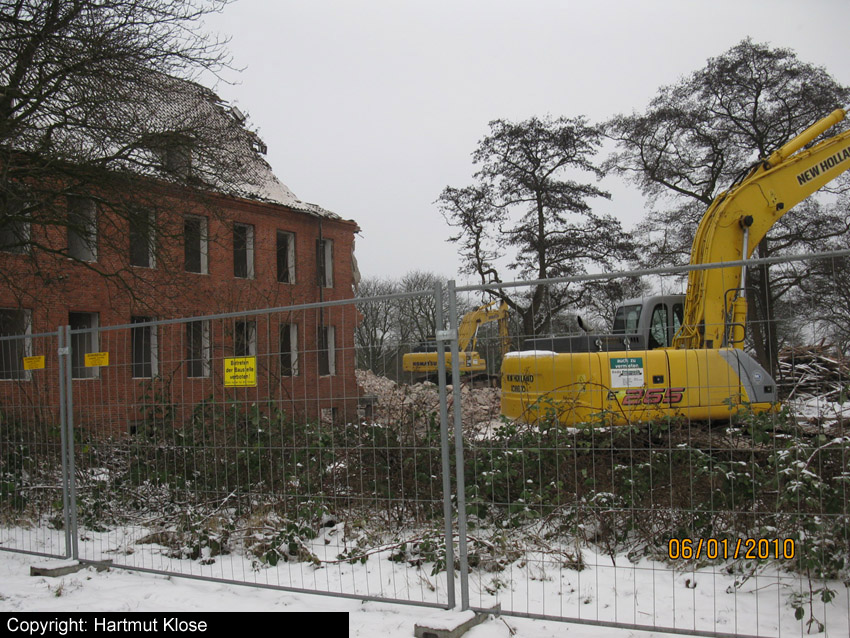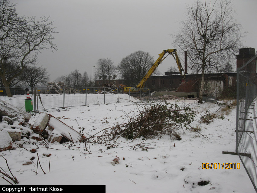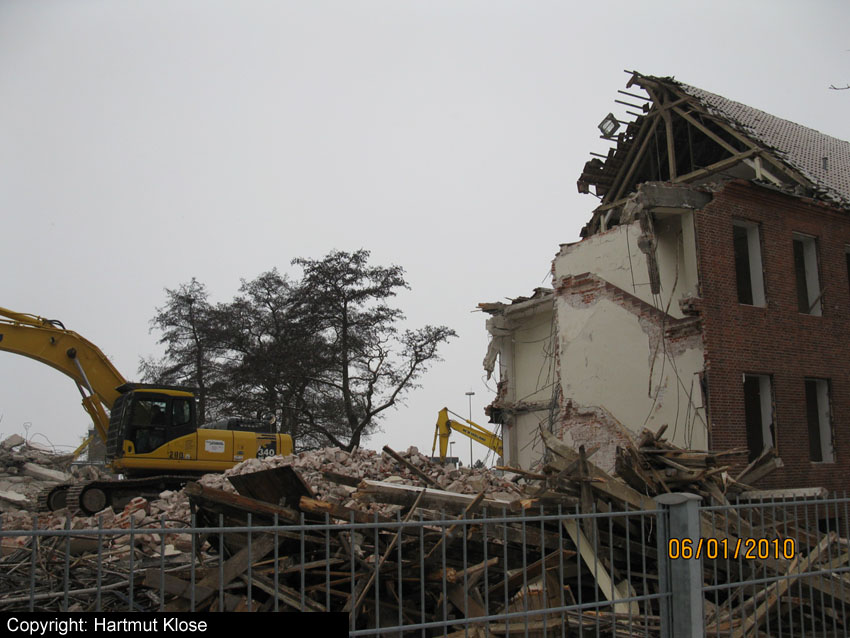 Abriss des letzten noch vorhandenen Hauptgebäudes westlich des Biosphere-Instituts fast vollendet / ursprüngliches westlichstes Hauptgebäude ist entfernt / 06.01.10 / 08.01.10