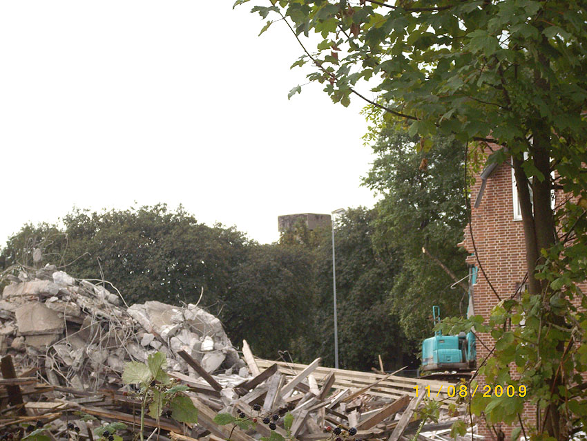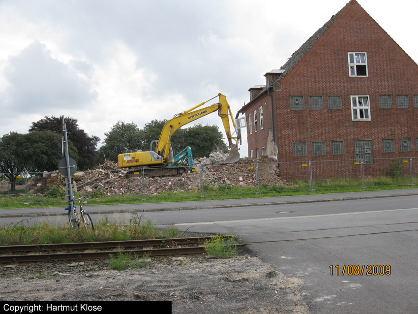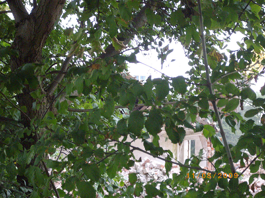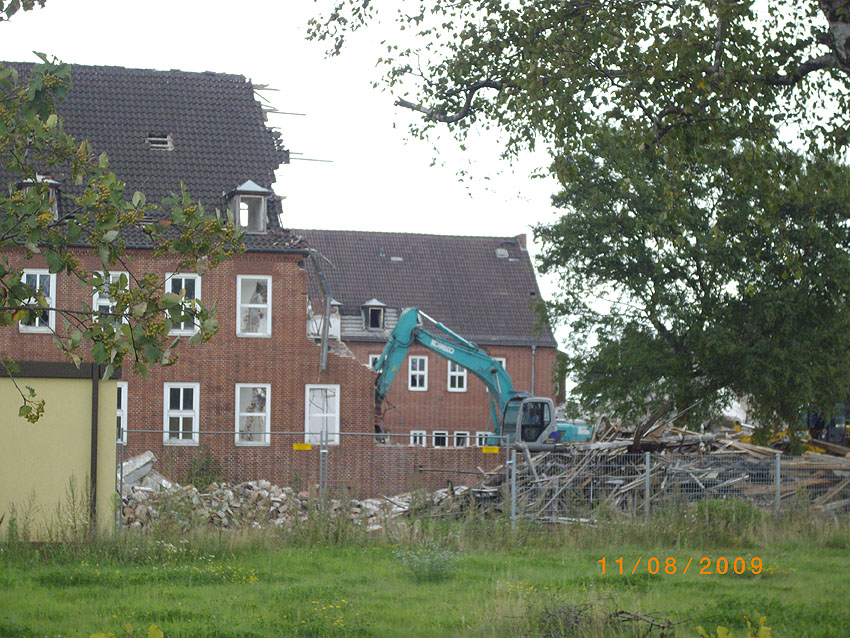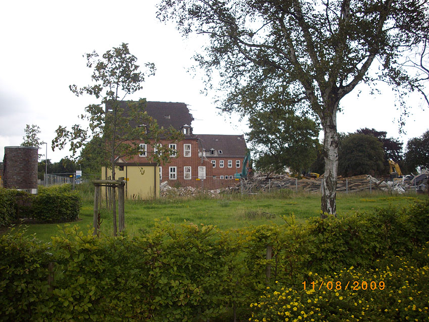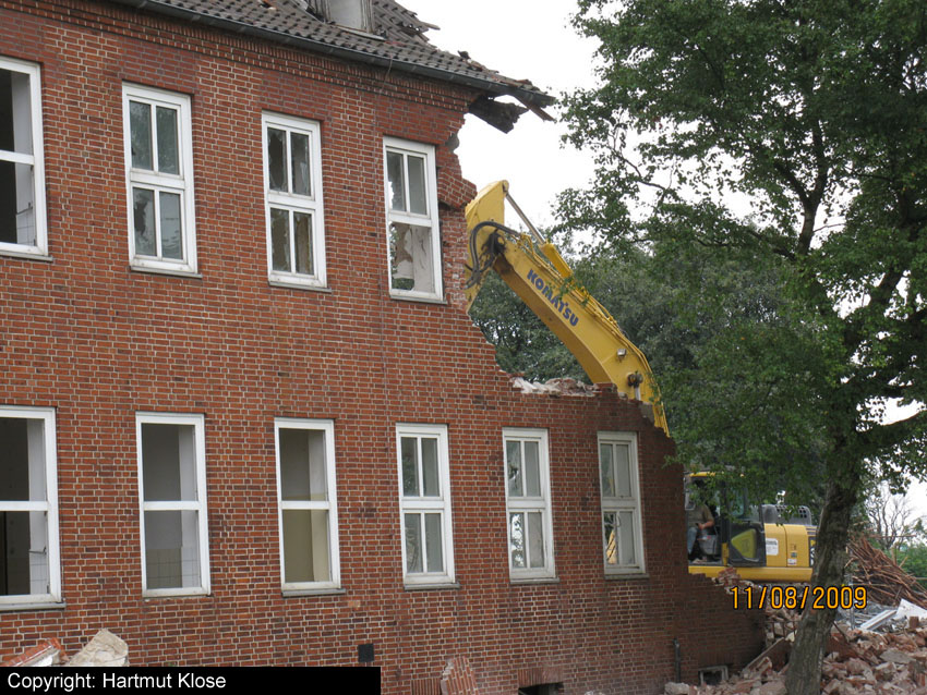 Banter Kaserne / übernächst östliches Gebäude der ehemaligen Kirche gänzlich entfernt / Hauptgebäude östlich des Biosphere-Instituts zu zwei Dritteln abgerissen / Kleinbau im Ostbereich längs der Emsstraße wird abgerissen / 11.08.09