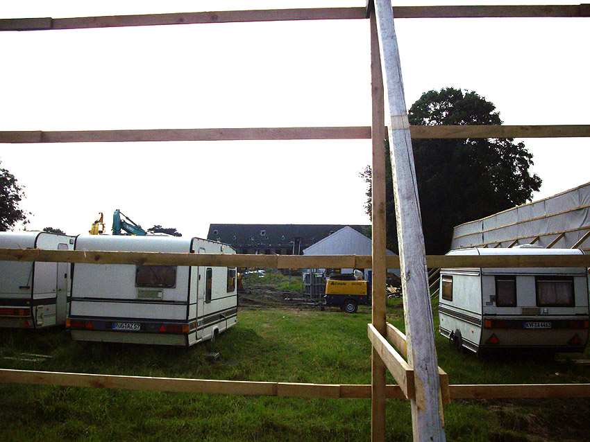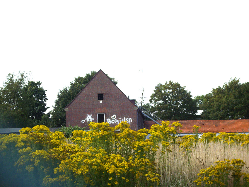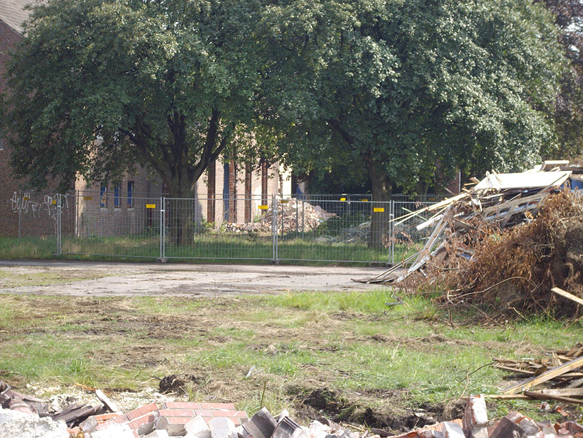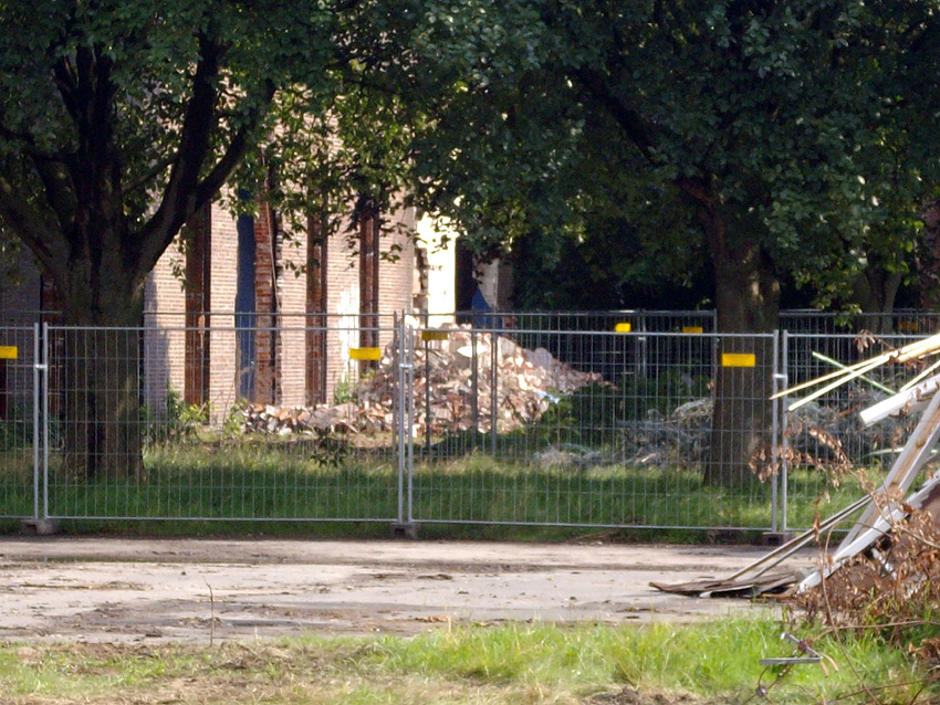 Banter Kaserne / Entkernung läuft / Fenster großteilig herausgebrochen / Abrissbeginn an Kirche und Nebengebäuden / Schuttberge am T 750 2 / 17.07.09