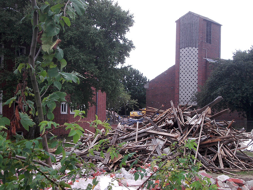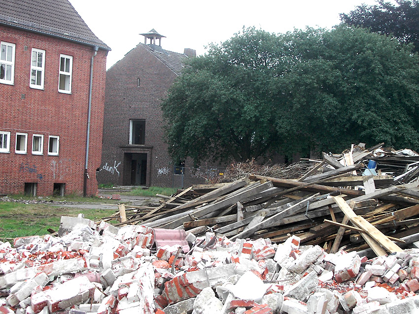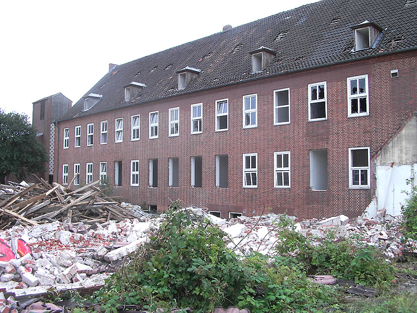 Banter Kaserne / Bebauung zwischen Hauptgebäude Ost und dem darauf folgenden wird abgerissen / Gebäude östlich ehemaliger Kirche wird entfernt / 21.07.09