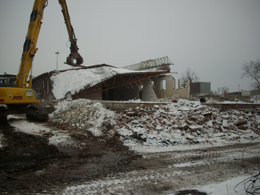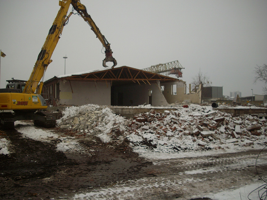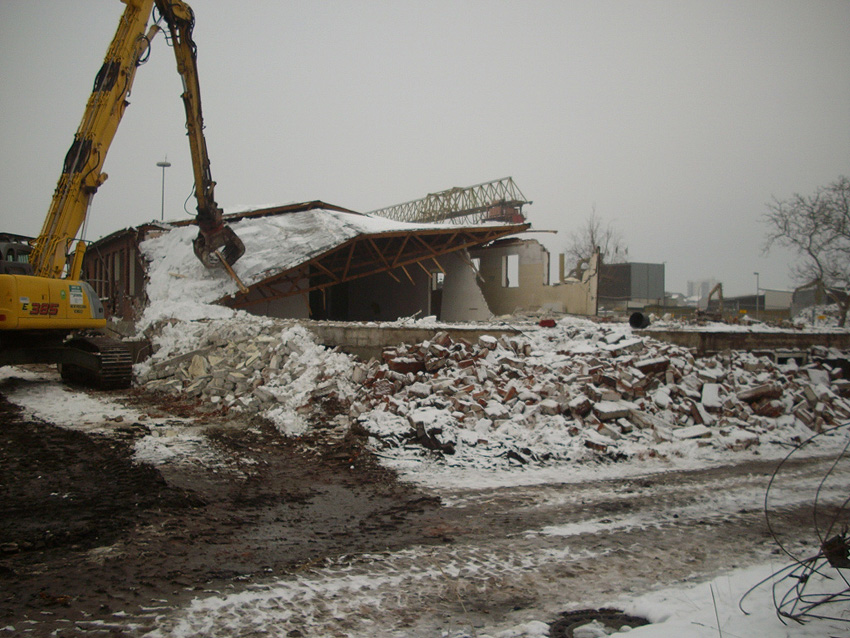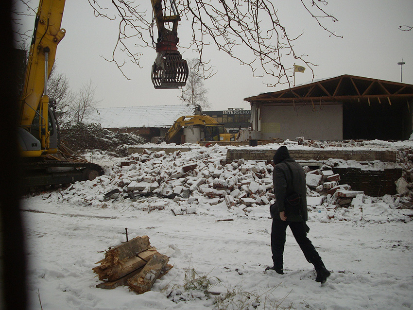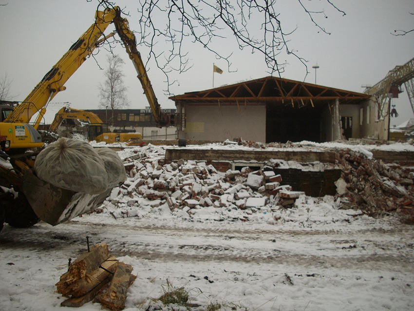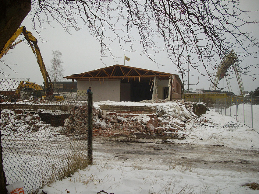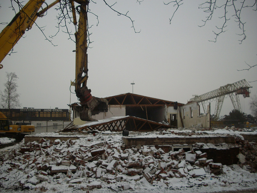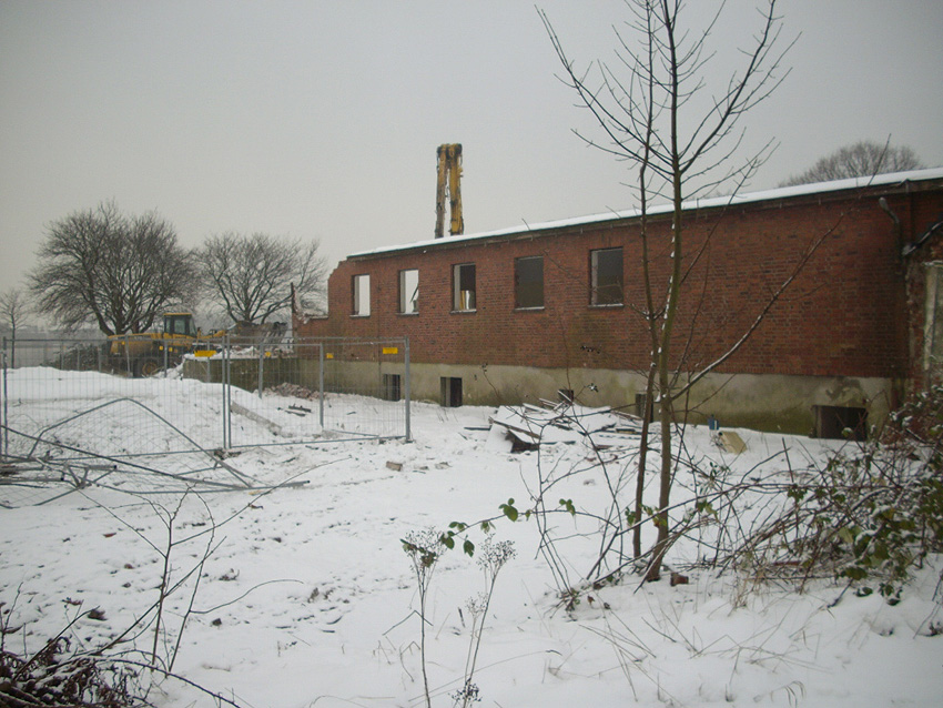 Banter Kaserne / Abriss des westlichsten Hauptgebäudes vollendet / Abriss des ursprünglich westlichsten Hauptgebäudes eingeleitet / Gebäude bis zum 23.12.09 zu zwei Dritteln entfernt / sämtliche Verbindungsgebäude komplett abgerissen / Impressionen Bereich Trafohaus / Stellwerk / 22.12.09 / 23.12.09 / 26.12.09
