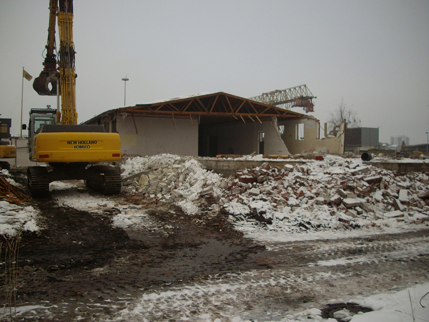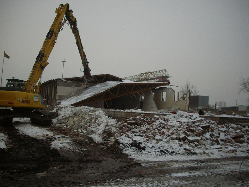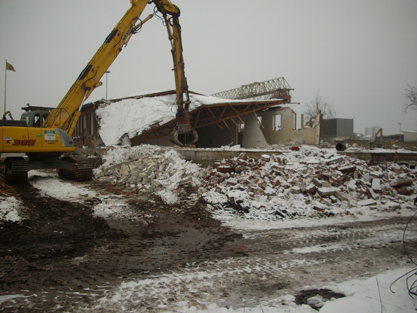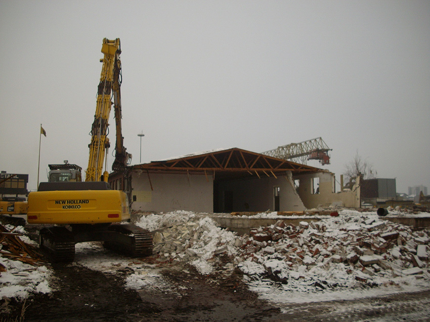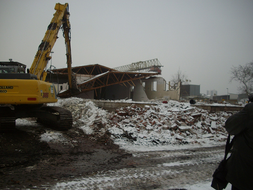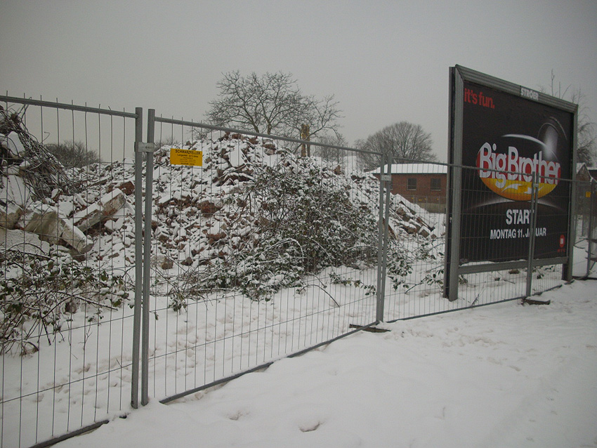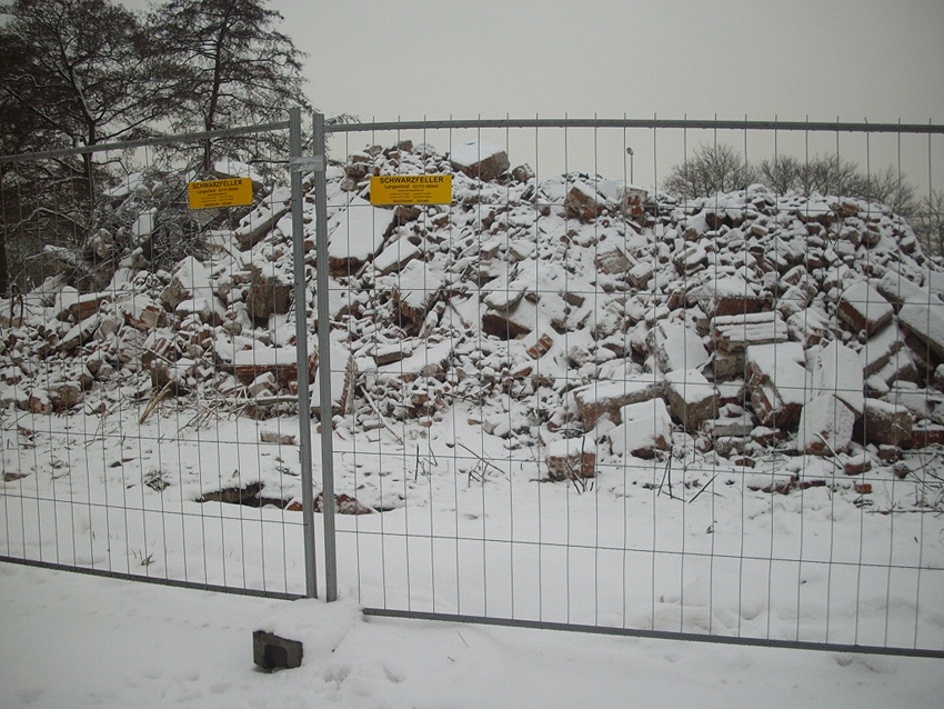 Banter Kaserne / Abriss des westlichsten Hauptgebäudes vollendet / Abriss des ursprünglich westlichsten Hauptgebäudes eingeleitet / Gebäude bis zum 23.12.09 zu zwei Dritteln entfernt / sämtliche Verbindungsgebäude komplett abgerissen / Impressionen Bereich Trafohaus / Stellwerk / 22.12.09 / 23.12.09 / 26.12.09