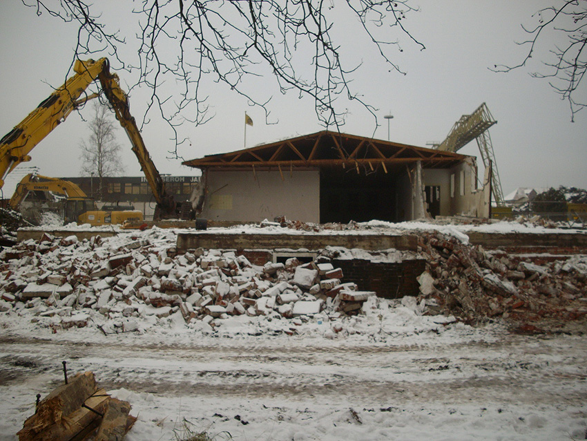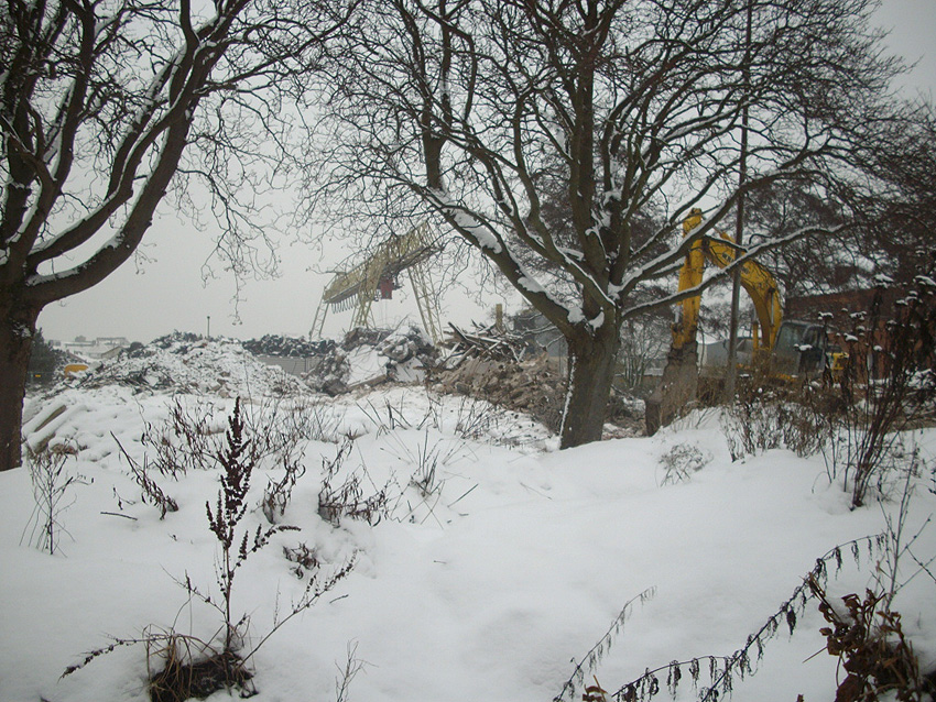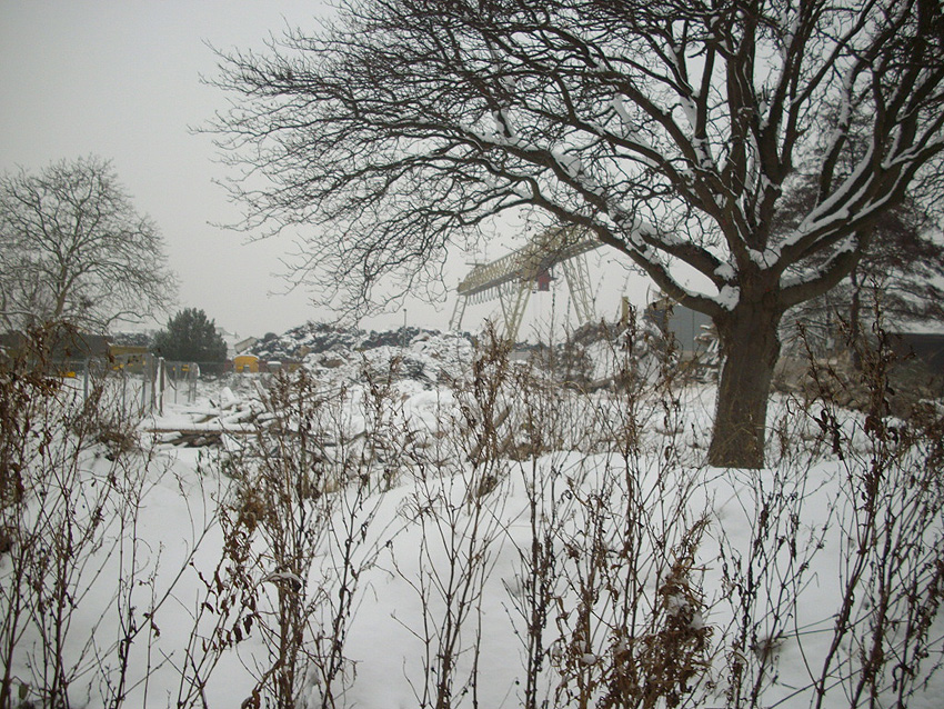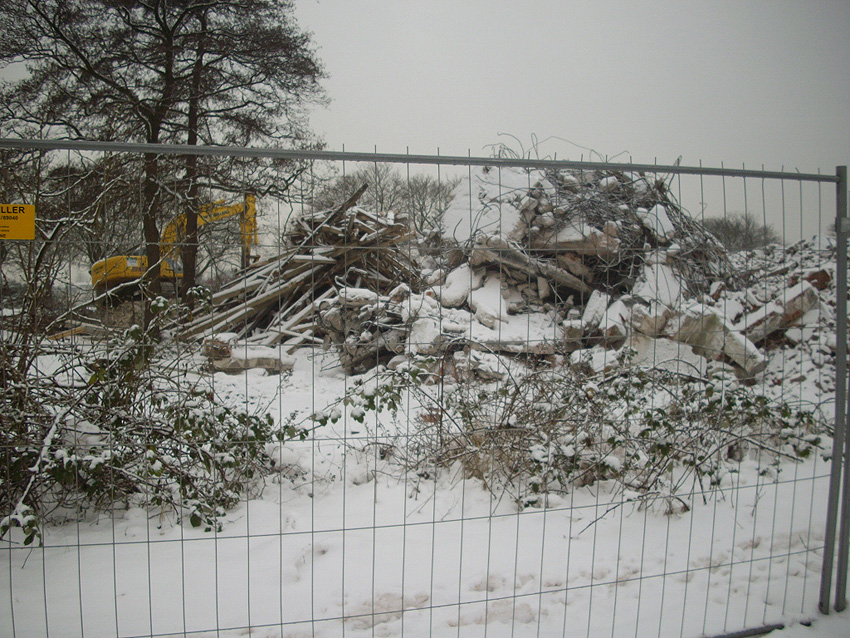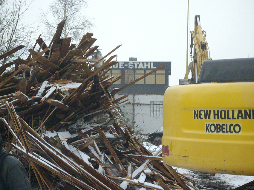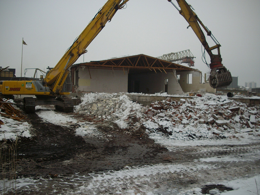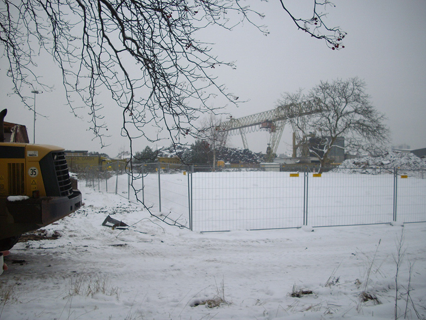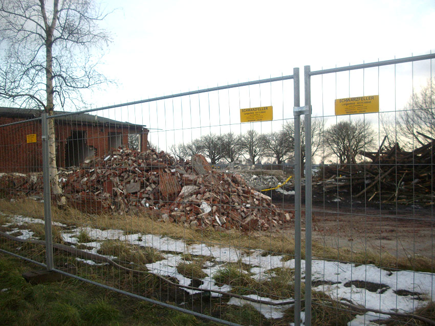 Banter Kaserne / Abriss des westlichsten Hauptgebäudes vollendet / Abriss des ursprünglich westlichsten Hauptgebäudes eingeleitet / Gebäude bis zum 23.12.09 zu zwei Dritteln entfernt / sämtliche Verbindungsgebäude komplett abgerissen / Impressionen Bereich Trafohaus / Stellwerk / 22.12.09 / 23.12.09 / 26.12.09