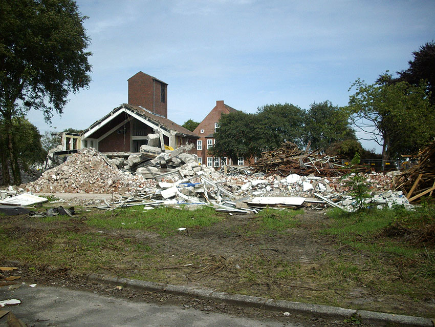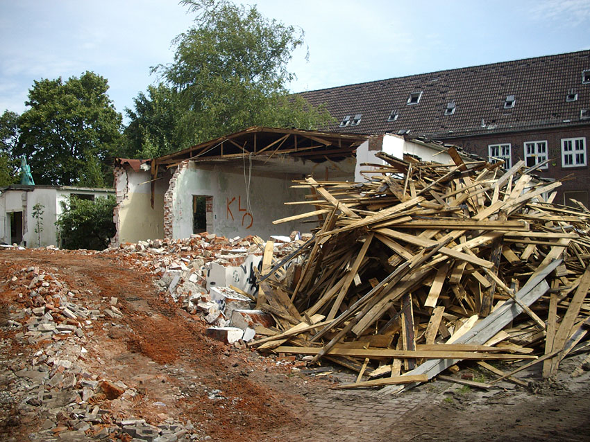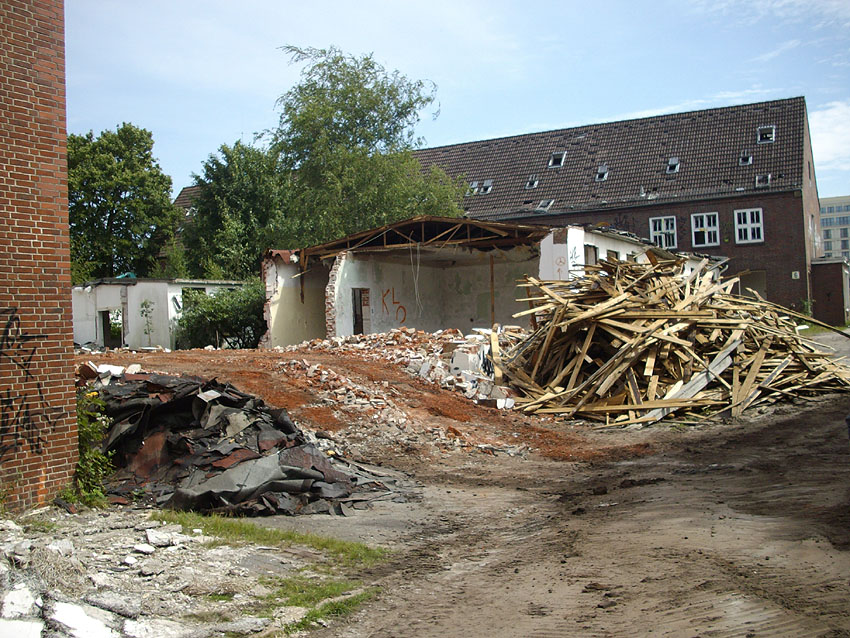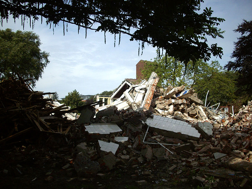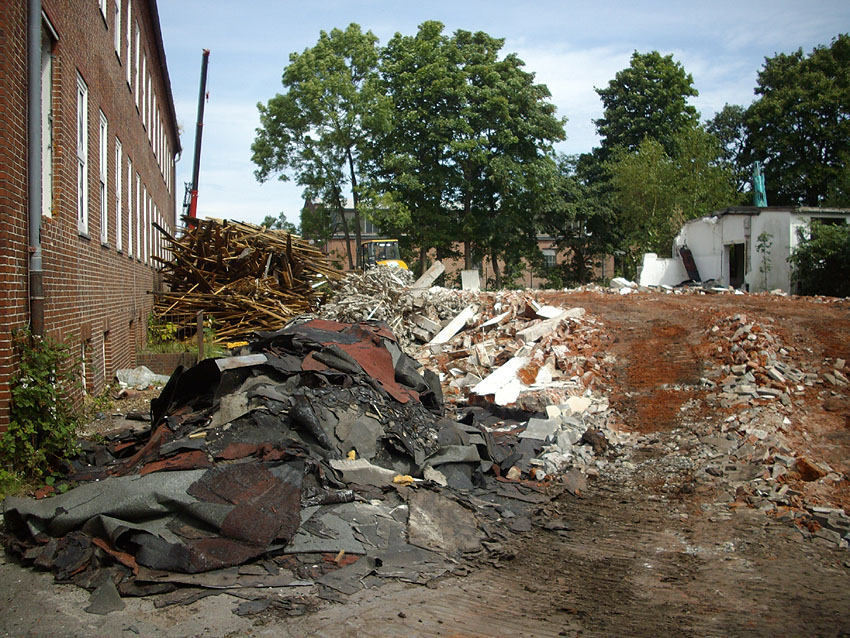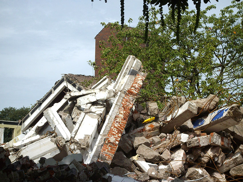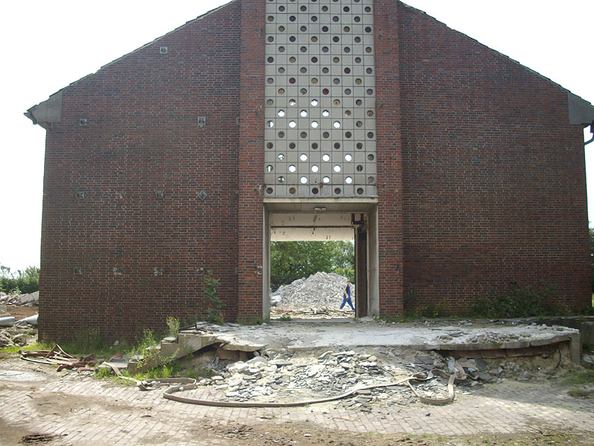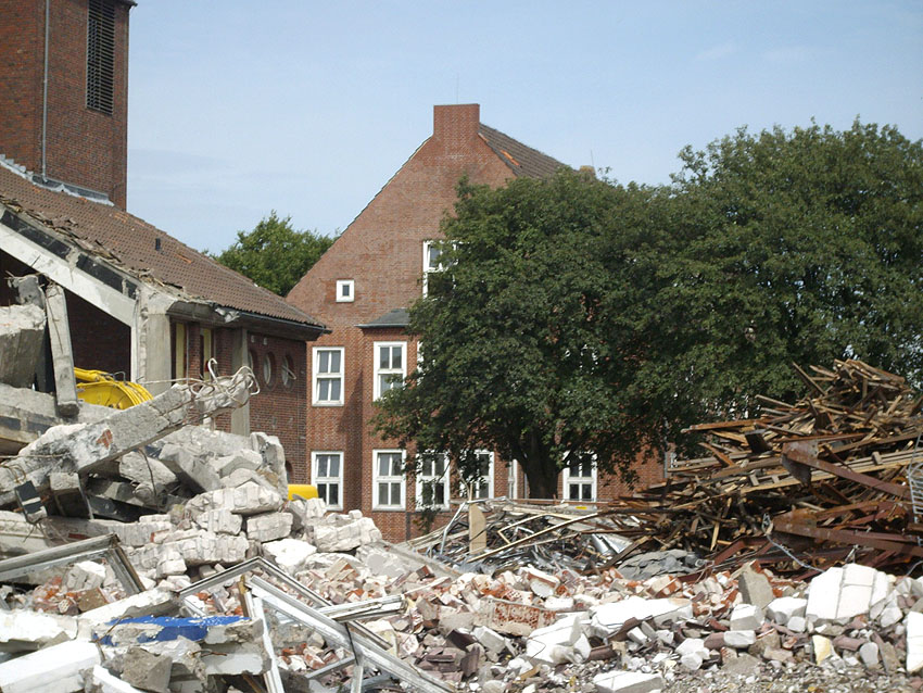 Der Ostbereich am 29. Juli 2009. Der Abriss ist in vollem Gange. Die ehemalige Kirche steht nur noch zur Hälfte...
