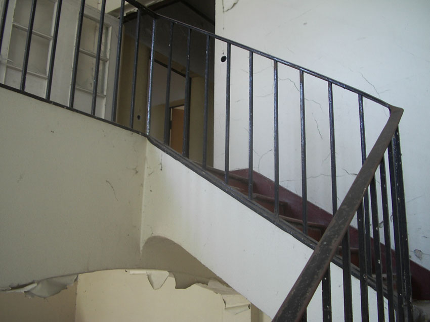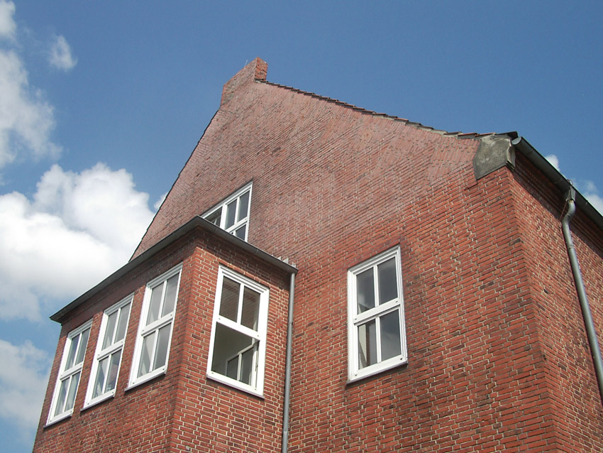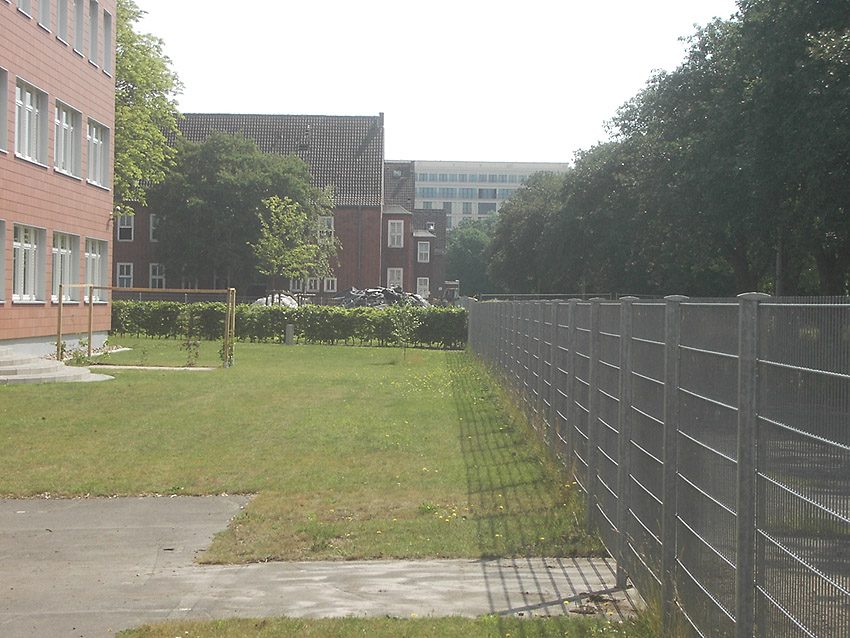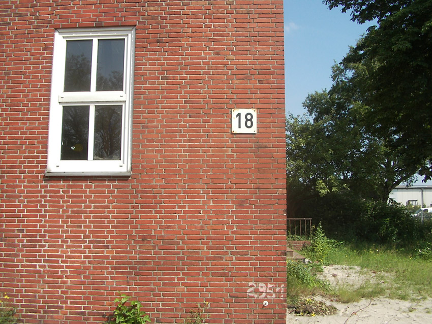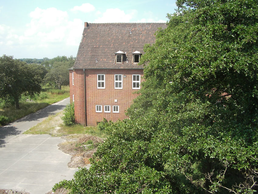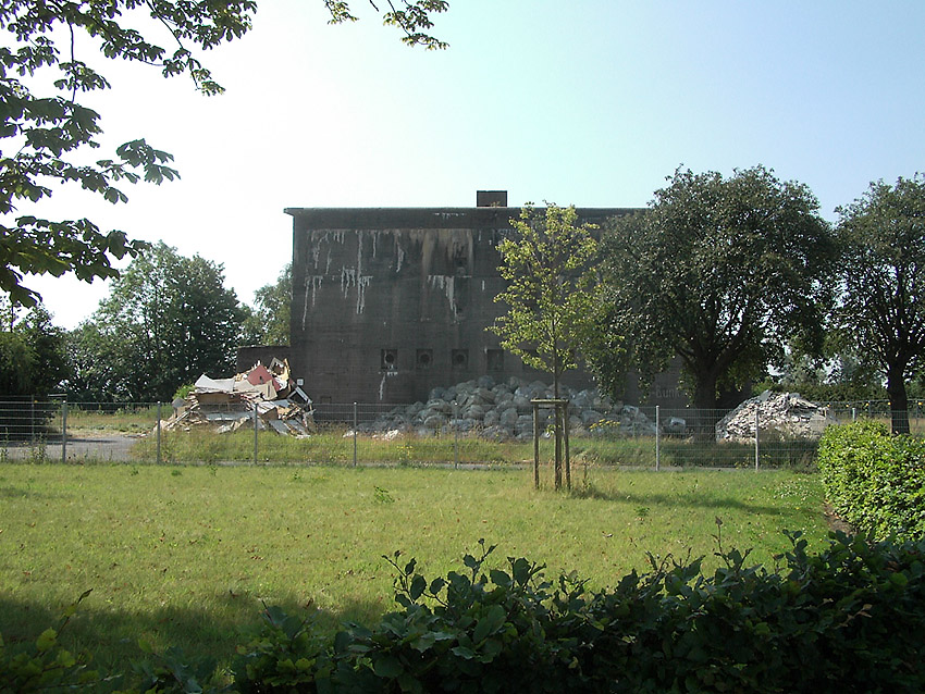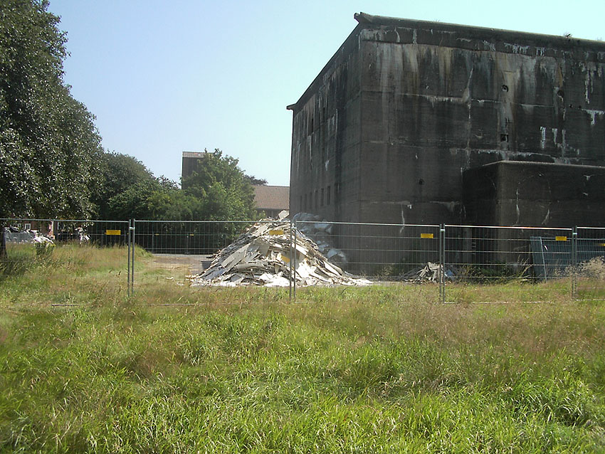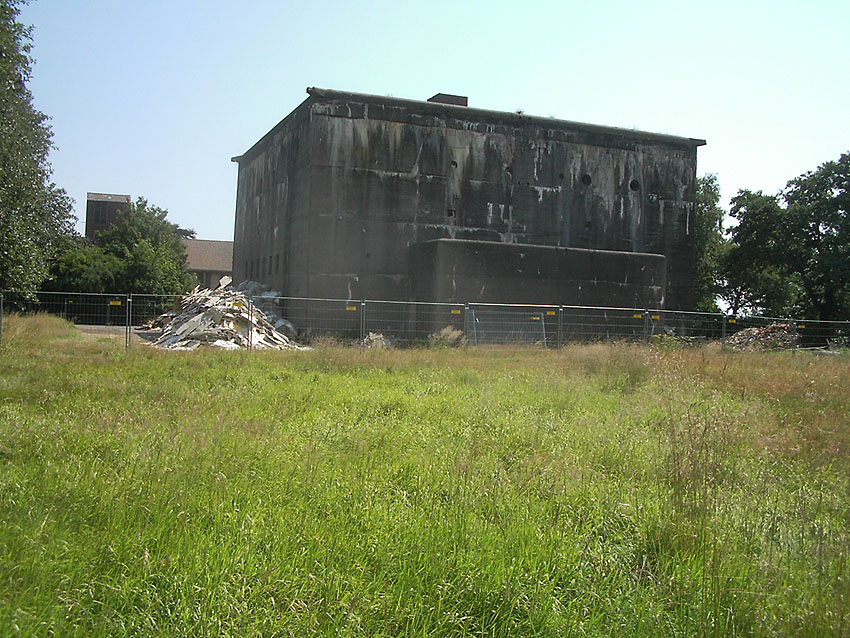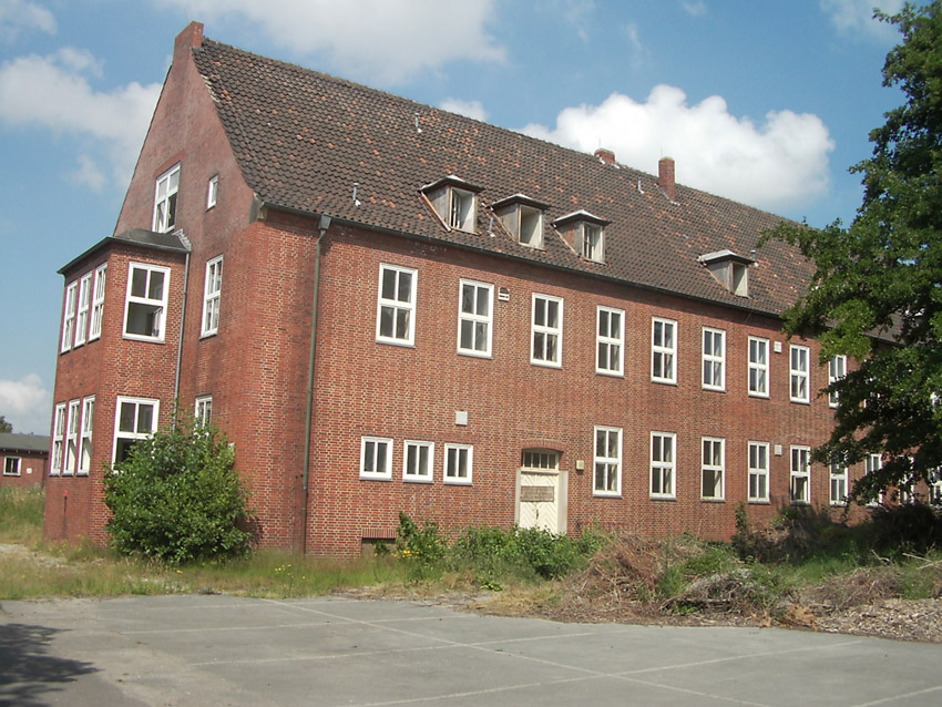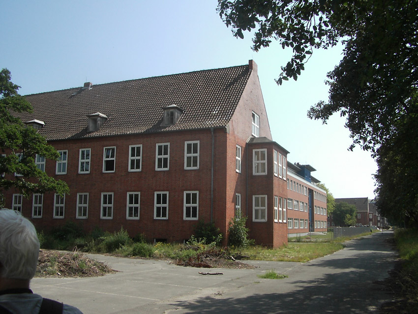Anmerkung: Dieses Gebäude war ein weiteres, sechstes und damit westlichstes großes Hauptgebäude der Banter Kaserne. Die vertikalen Maße und die des südlichen Vorbaues entsprechen denen der anderen fünf großen Gebäude samt deren Südvorbauten. Das Bauwerk fiel im Krieg großteilig den Bomben zum Opfer. Auf Luftbildern von 1944 sowie 1945 ist zu erkennen, dass das Gebäude bis auf die Südkante nicht mehr die Höhe der anderen fünf Bauten besaß und in diesem Bereich eventuell Wiederaufbautätigkeit oder Umbautätigkeit vorhanden gewesen ist, oder zumindest vorgesehen war. Definitiv wurde das Erdgeschoss nach dem Krieg verändert, eventuell sogar fast gänzlich neu auf die im Krieg zudem in einigen Bereichen umgestaltete Kellerebene gesetzt.