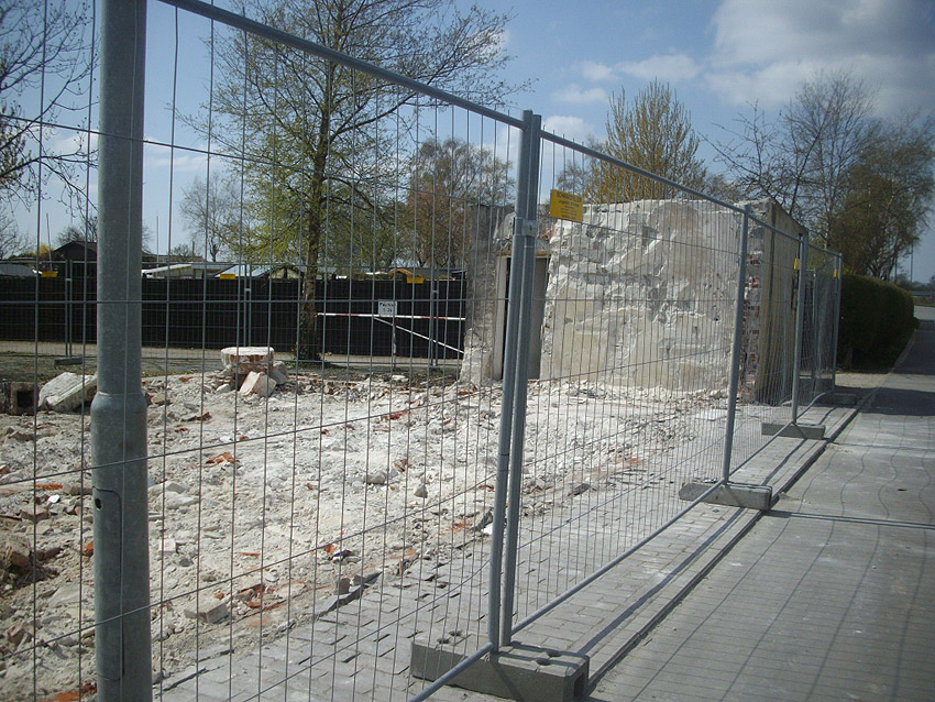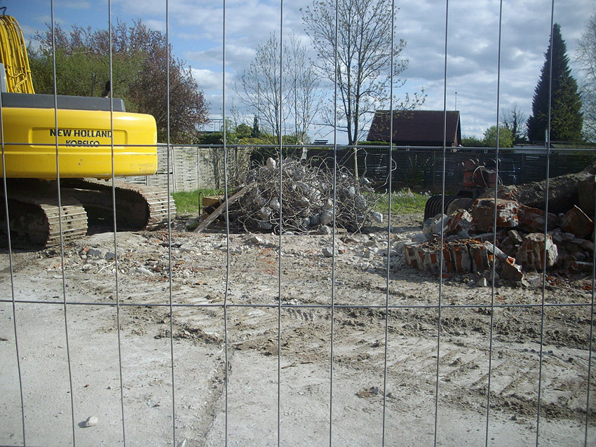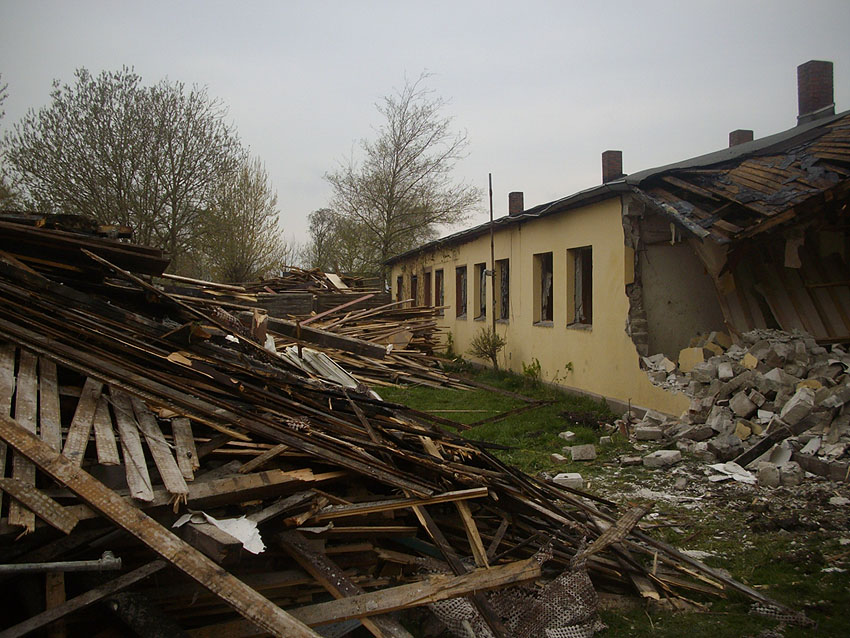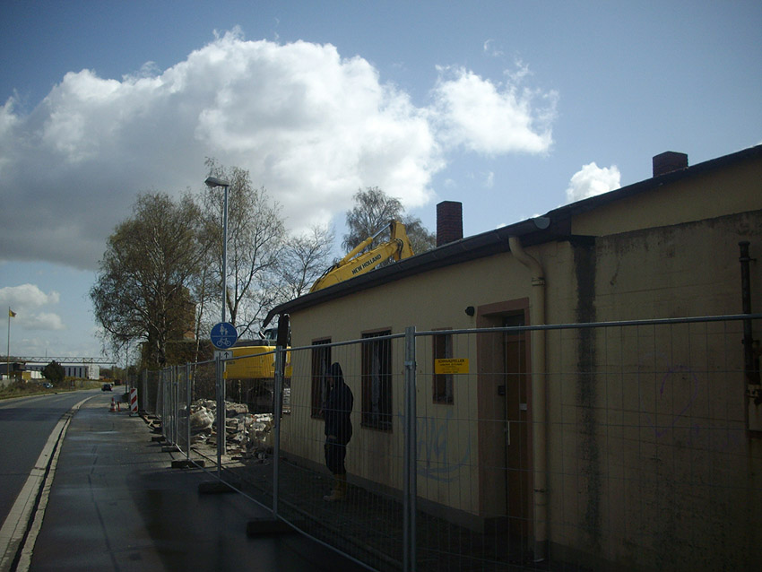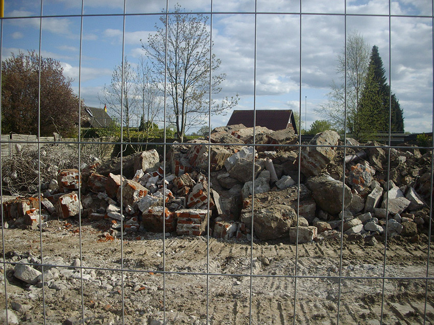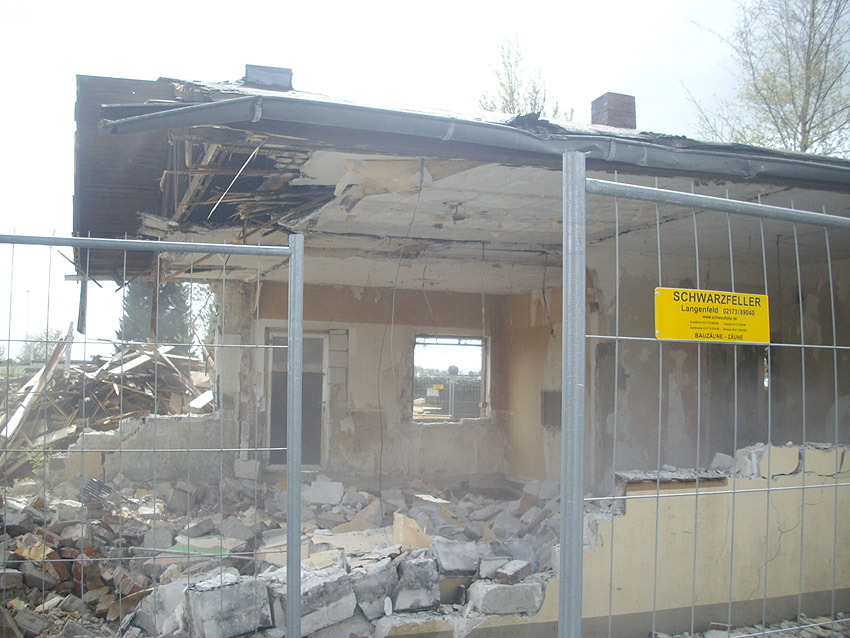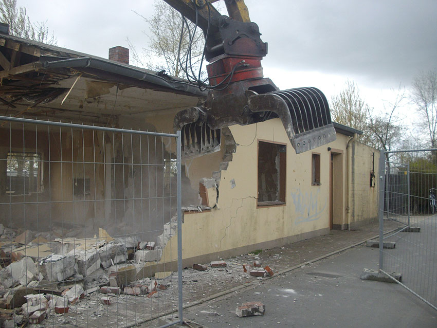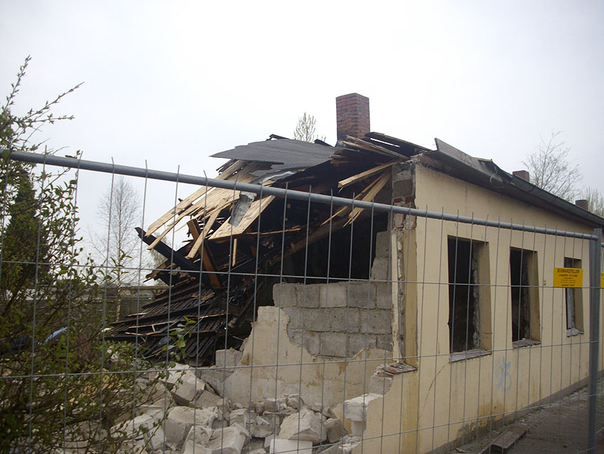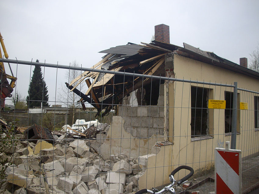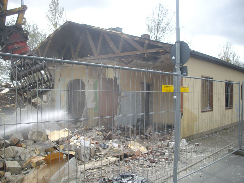 21.04.10: Der Abriss des Gebäudes ist nun bereits zu drei Vierteln vollzogen. Morgen folgt der Rest und der Abriss des kleinen Bunkers. Wir werden vor Ort sein und alles fotografisch festhalten.