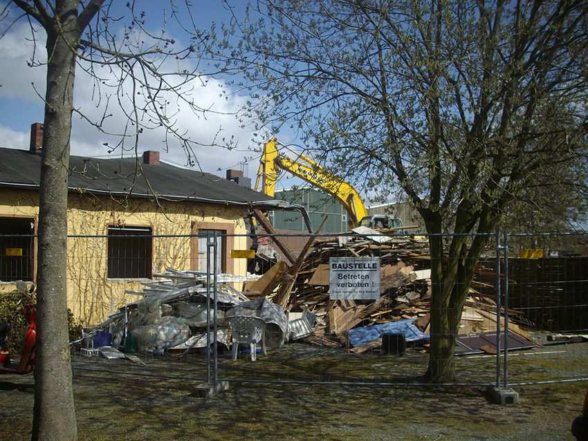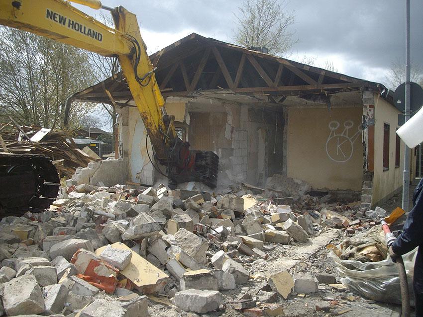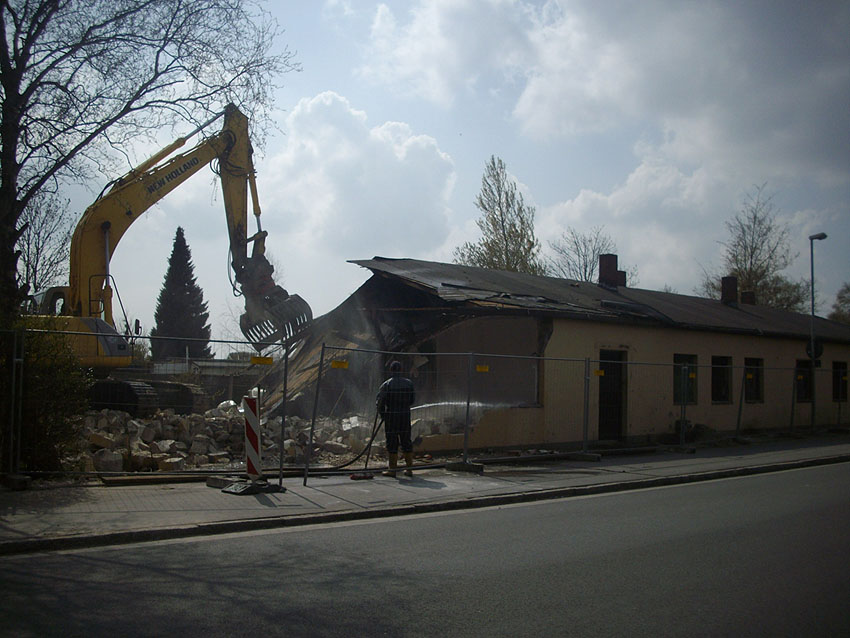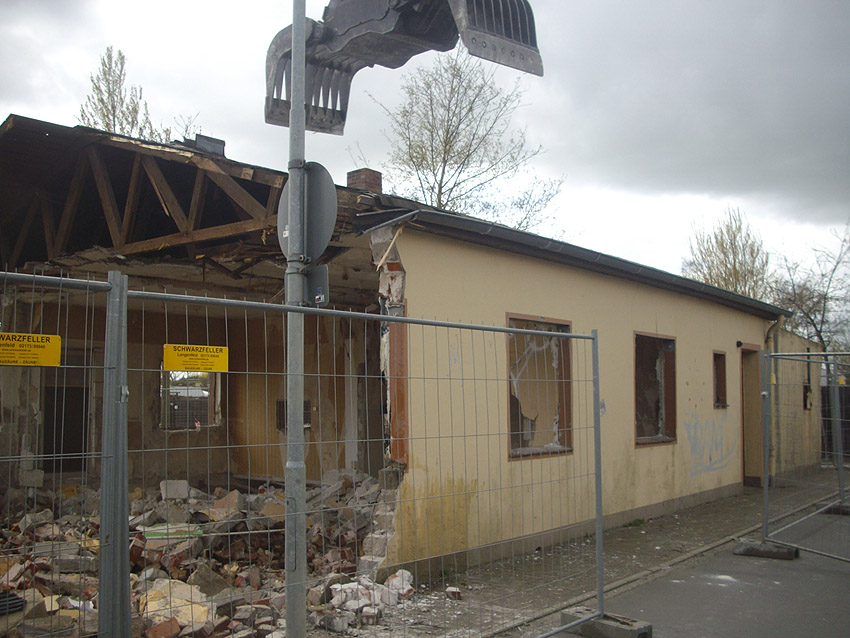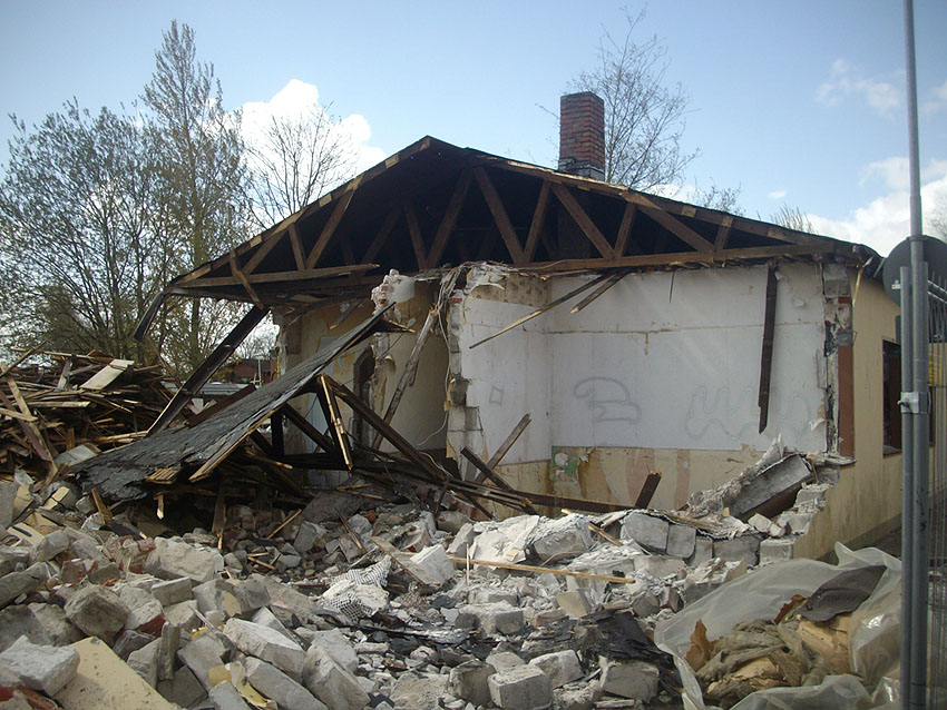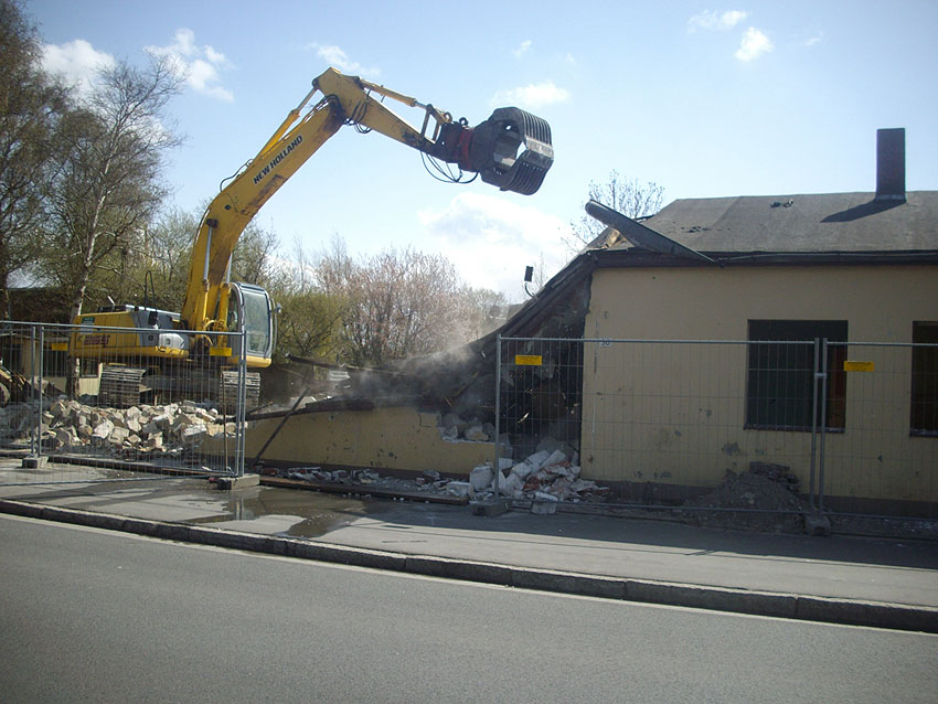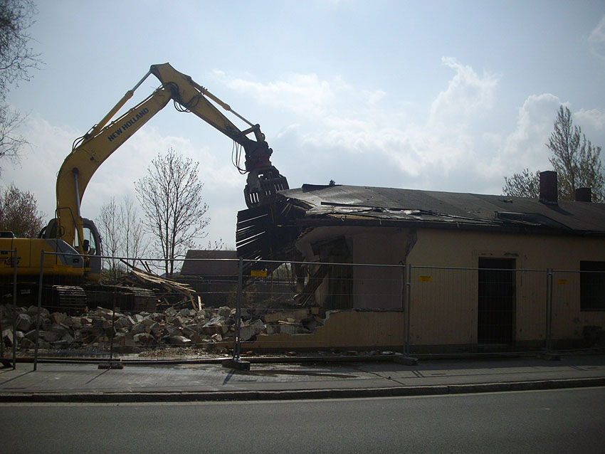 20.04.10: Der Abriss des Gebäudes hat begonnen. Am heutigen Tag wurde bereits über ein Viertel des Objektes vernichtet.
