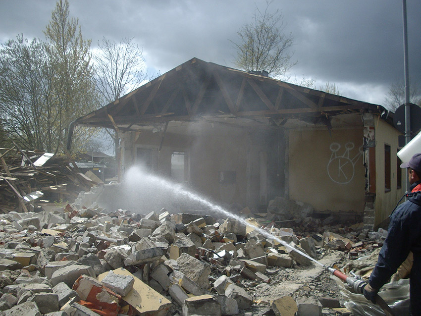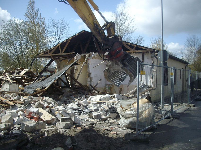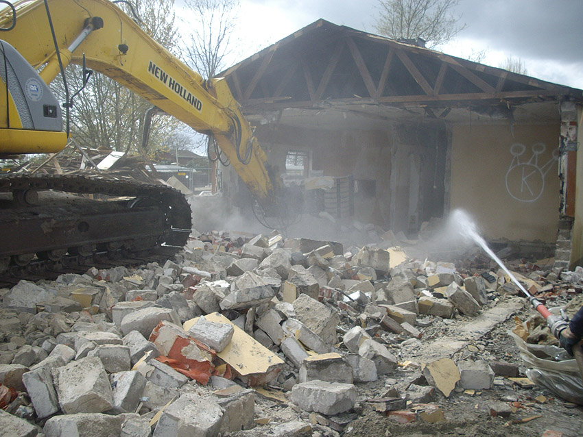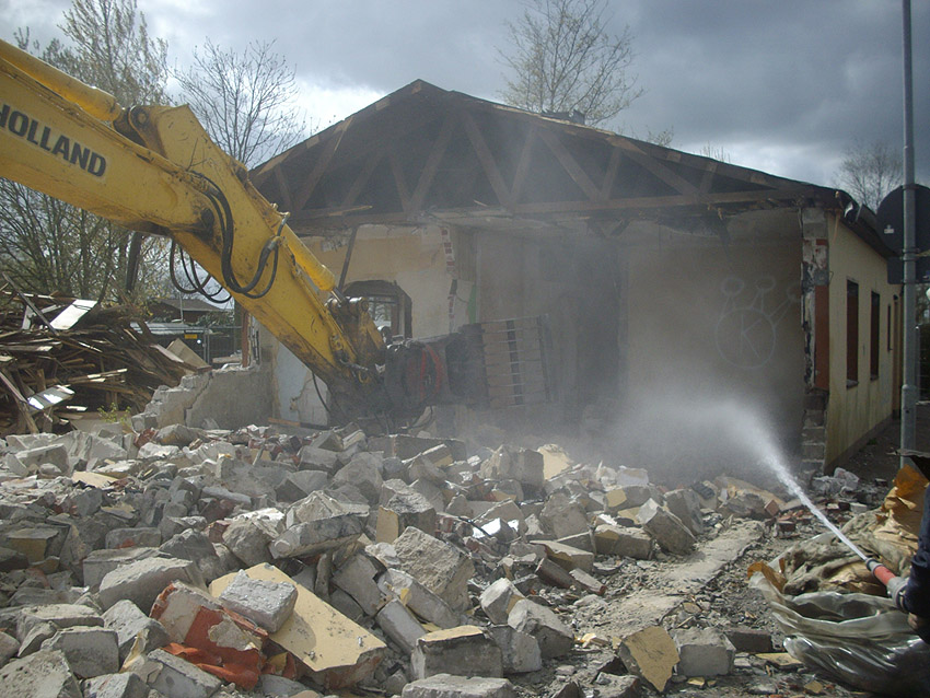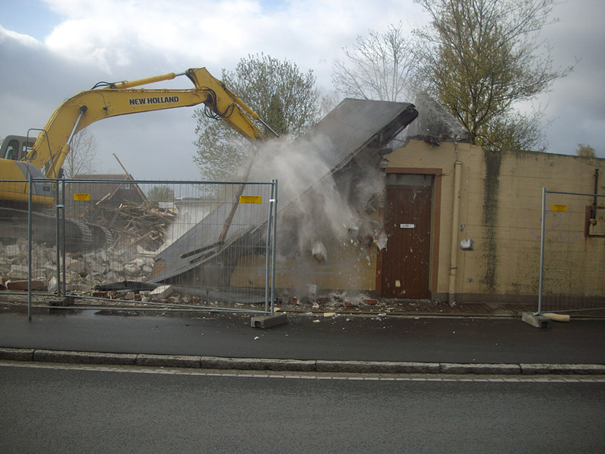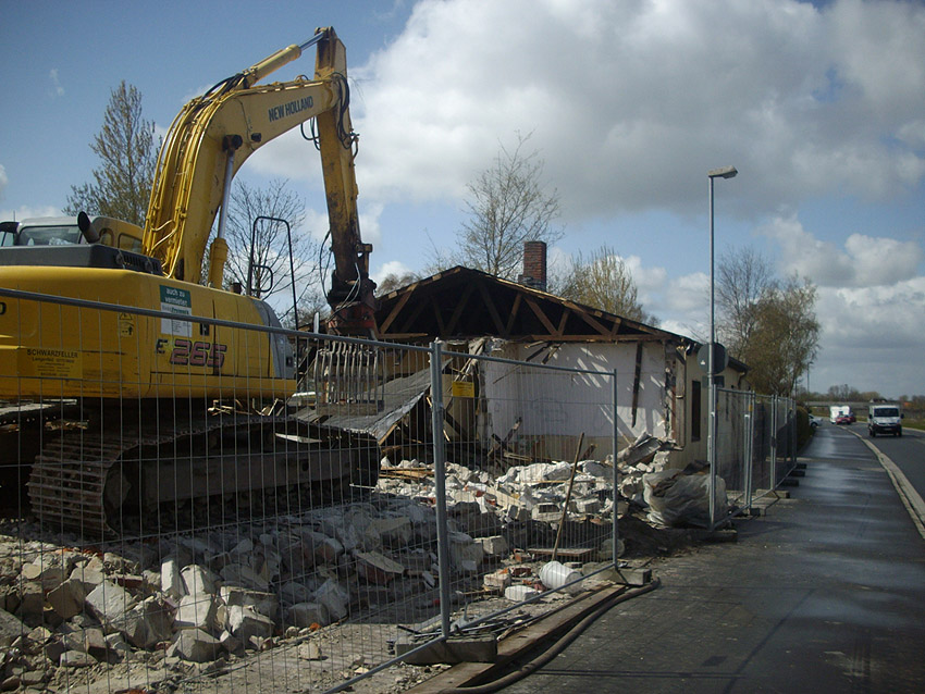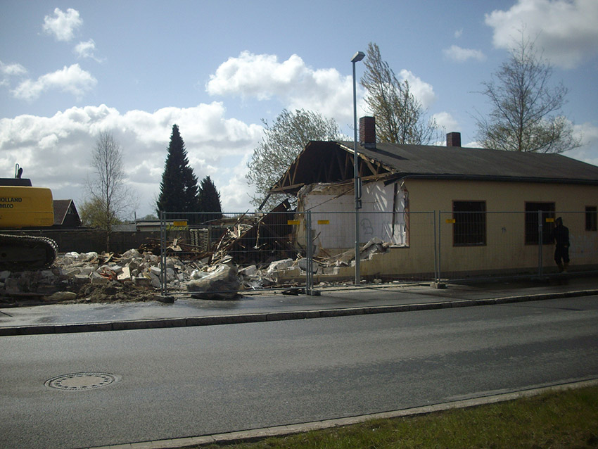 20.04.10: Der Abriss des Gebäudes hat begonnen. Am heutigen Tag wurde bereits über ein Viertel des Objektes vernichtet.