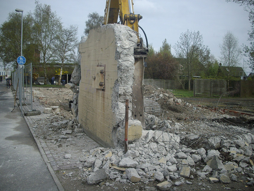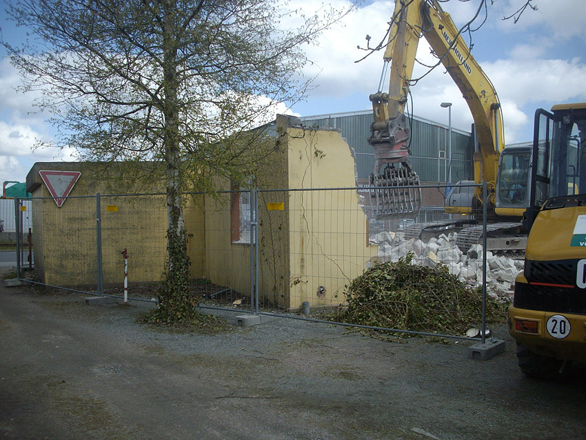 23.04.10: Der Bunker wurde heute nicht abgerissen. Seine Entfernung erfolgt daher am Montag, 26.04.10. Der Fundamentbereich des ehemaligen Gebäudes wurde bereits teilweise enttrümmert.