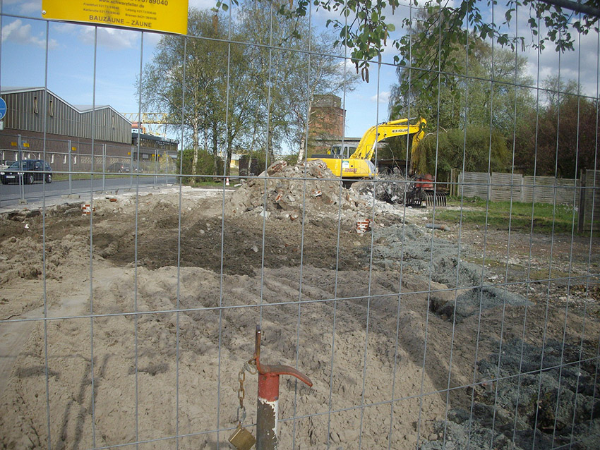 27.04.10: Das Gelände des ehemaligen Bunkers und Gebäudes ist großflächig bereinigt worden. Die Fundamente sind ausgehoben worden, der Bereich des Bunkers wurde mit Sand verfüllt.