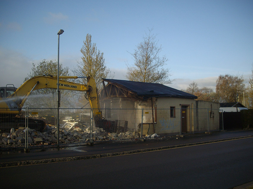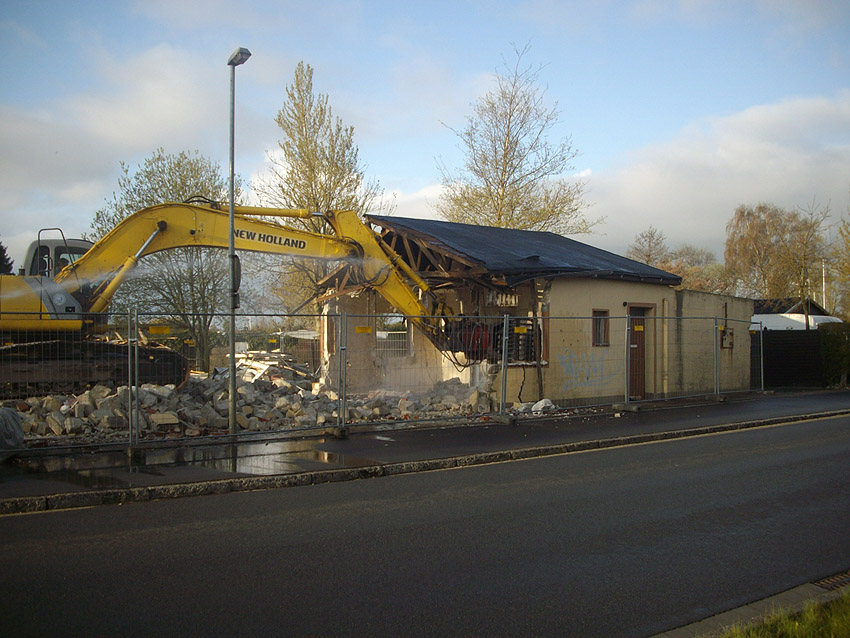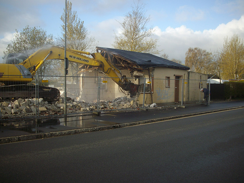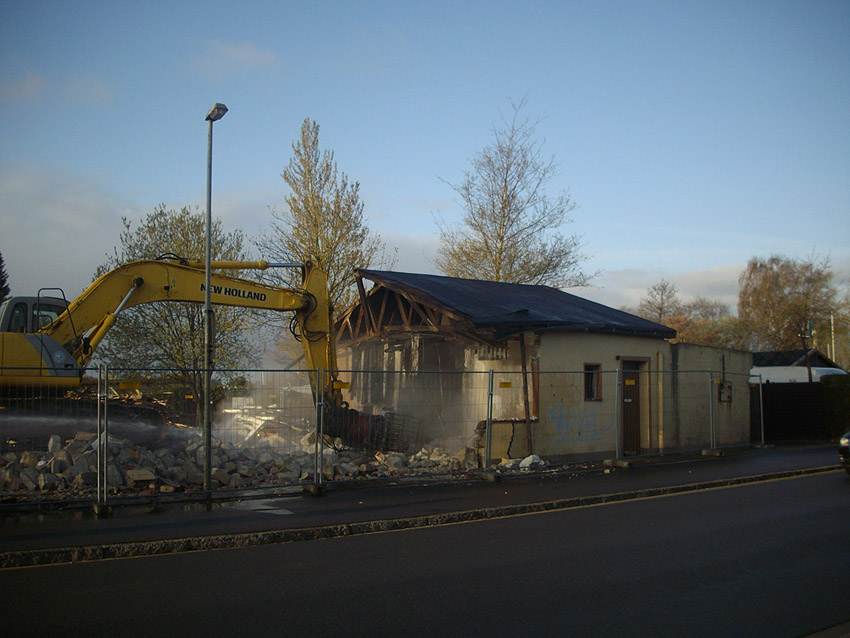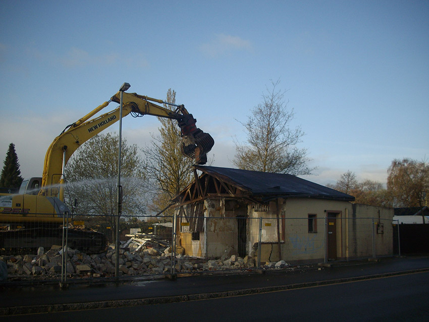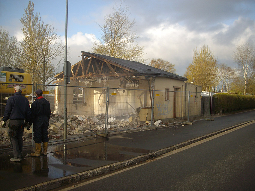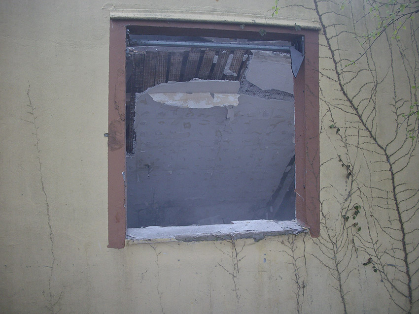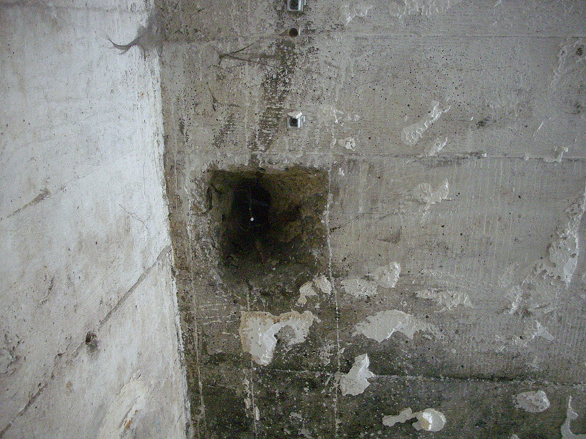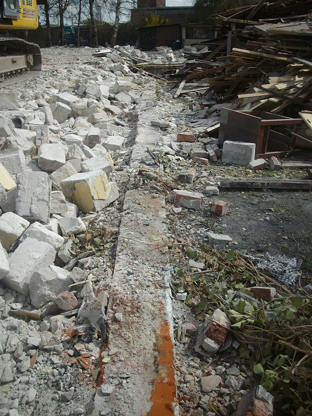 22.04.10: Das Gebäude wurde heute komplett entfernt. Der Bunker ist noch nicht zerstört (aufgrund einer noch nicht angelieferten Spezialabbruchzange). Das Bauwerk steht nun allein. Sein Abriss ist jedoch bereits für morgen, Freitag, 23.04.10 oder Montag, 26.04.10 angesetzt. Noch einmal konnten Innenaufnahmen des Bunkers gemacht werden.