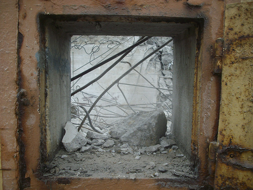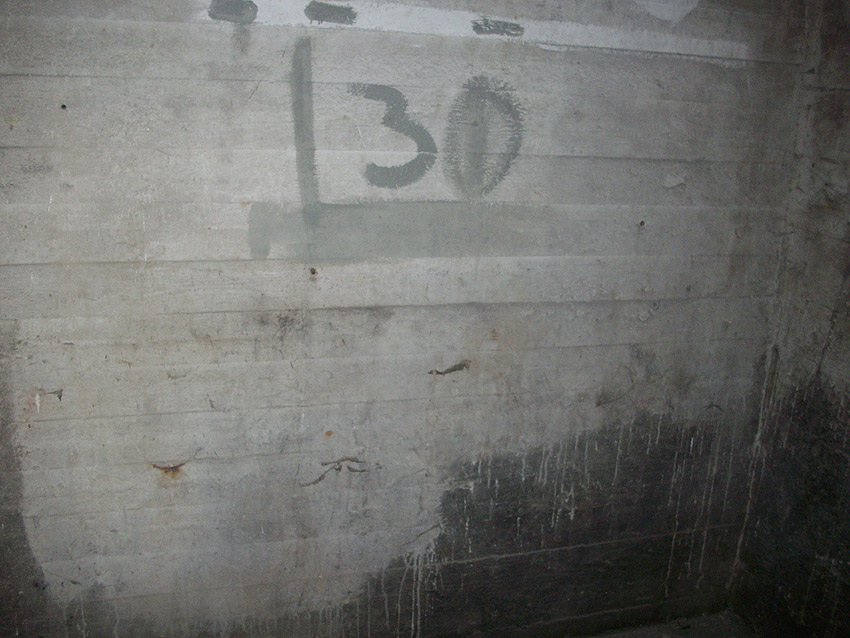 Der Öltank wurde aus dem Bunkerinneren bereits entfernt, am Abrisstag ergab sich daher nun freie Sicht auf die innere Westwand: