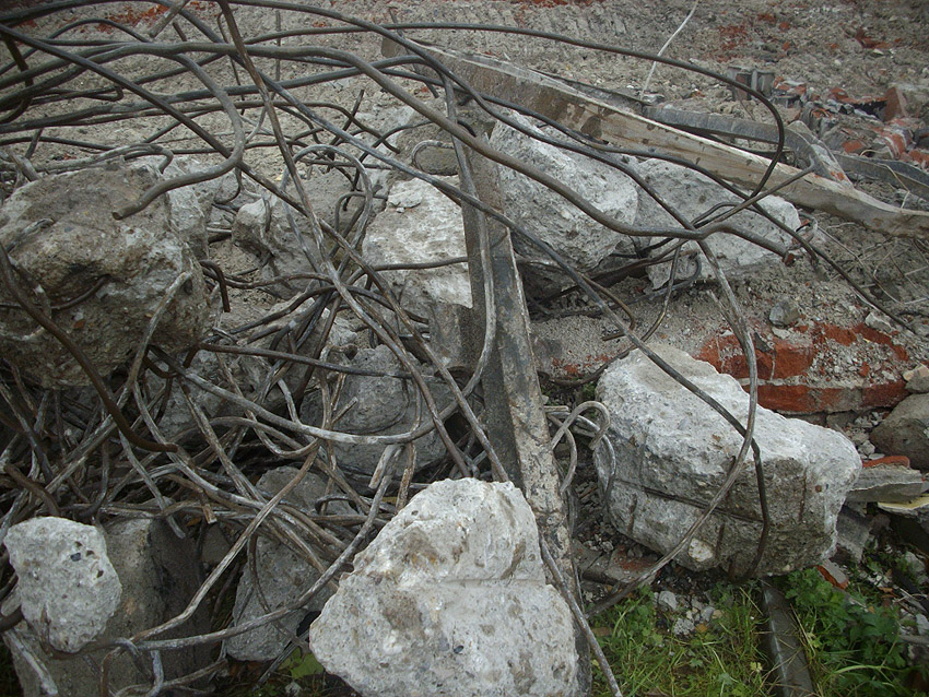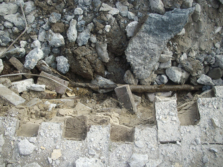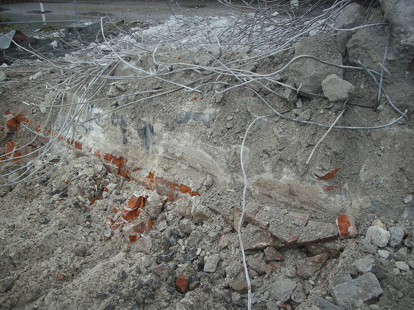 Mittlerweile wurde fast das gesamte Gebiet des ehemaligen Gebäudes von Schutt befreit. Das Fundament und die ehemalige Gebäudebegrenzung ist nun klar ersichtlich...