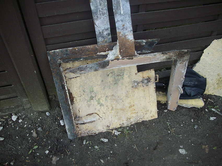 Unter anderem die Schutzklappe der Wandöffnung des Bunkers wurde während des Abrisses erfolgreich geborgen und gesichert: