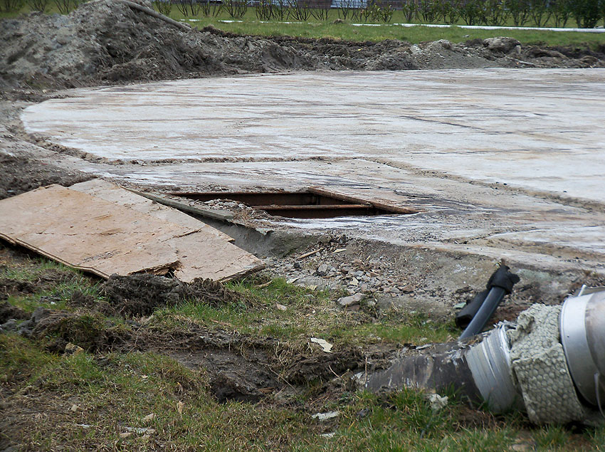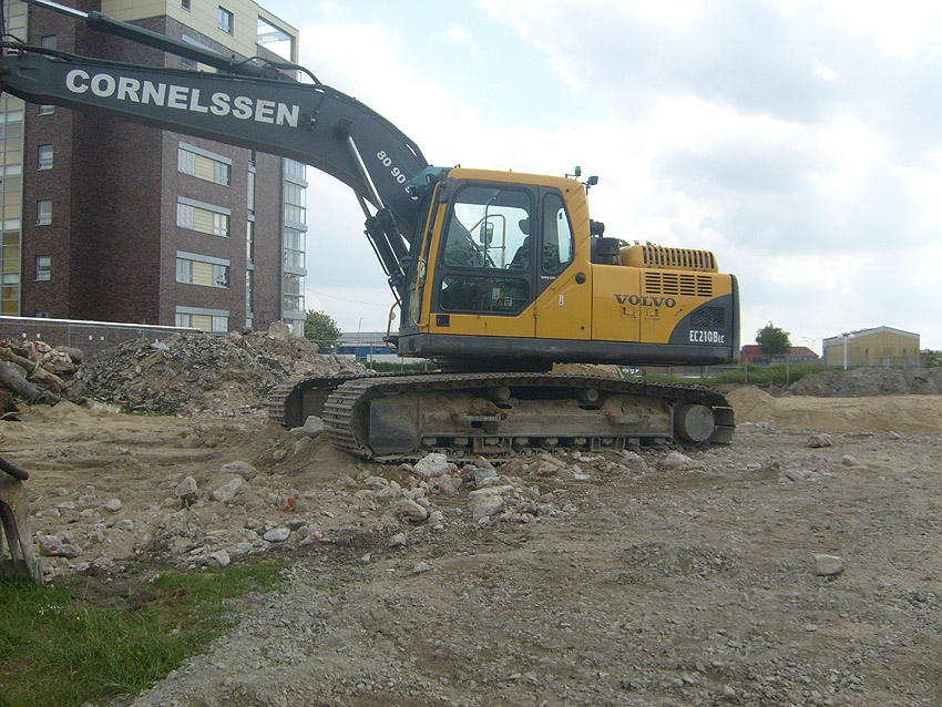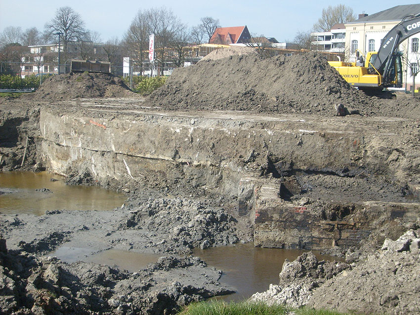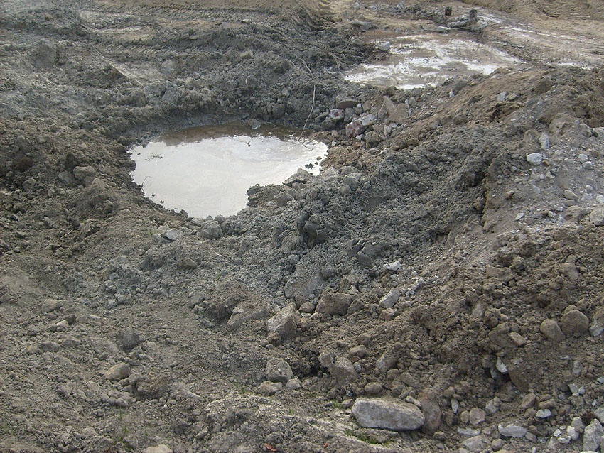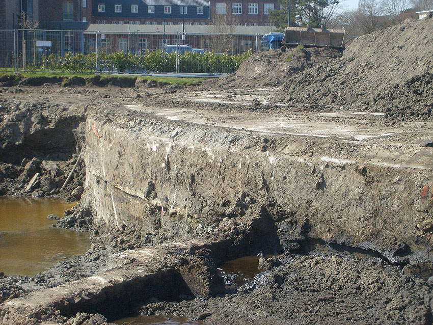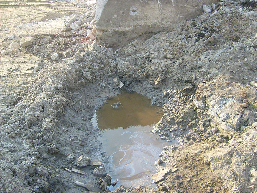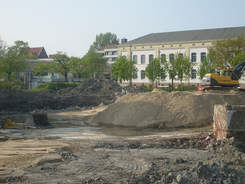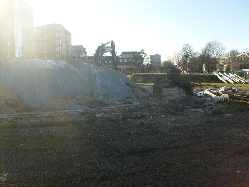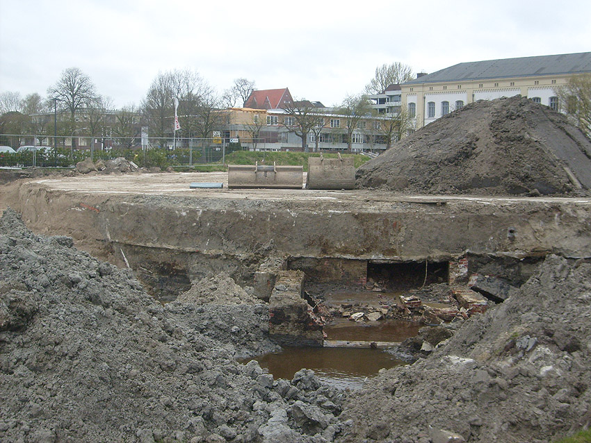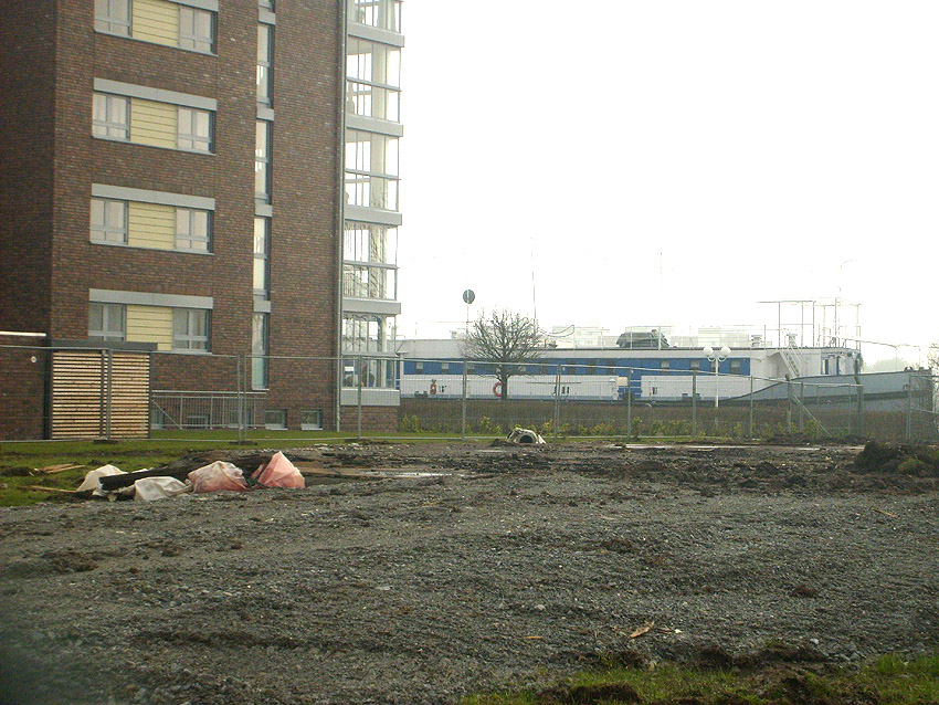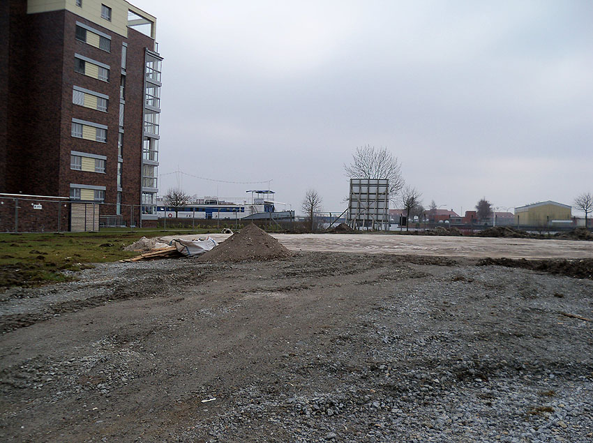 Erste Aktivitäten auf der Baustelle, das Erdreich südlich des Fundamentes wurde mit etwa einem Meter Tiefe entfernt und auf dem Fundament abgelagert. Diverse Rohre und andere Metallgegenstände, Relikte aus der Vergangenheit, wurden unter Erdgleiche aufgefunden. Ein leicht öliger Geruch ist am Gelände wahrzunehmen.