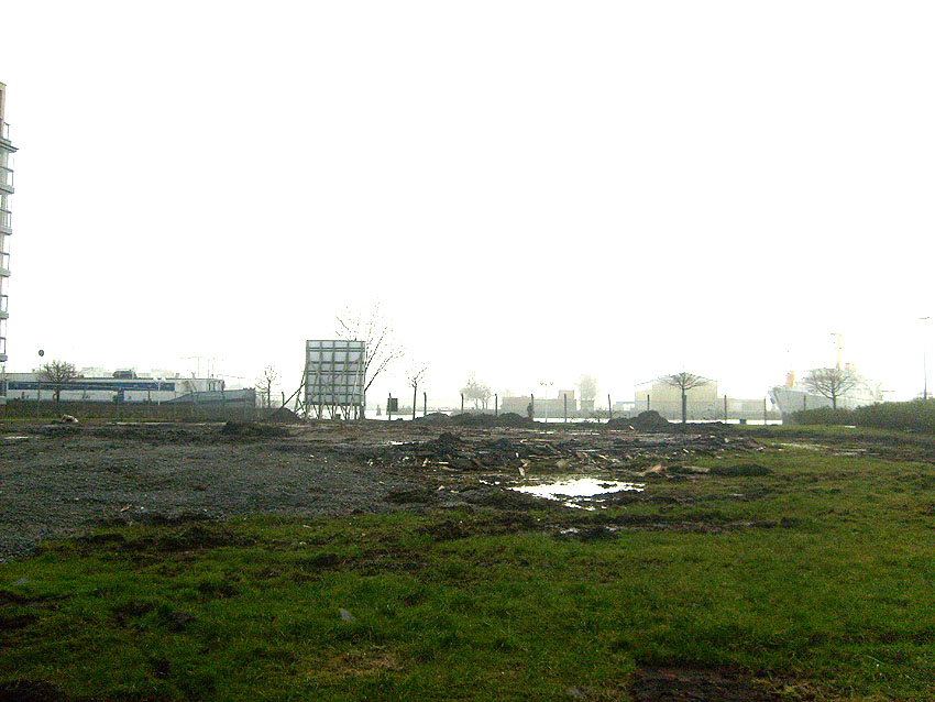 Noch keine Aktivität auf der Baustelle, ausgenommen einiger Erdumgrabungen.
