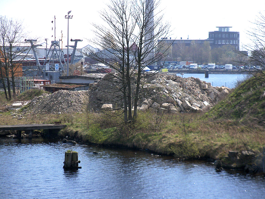 Das Tankfundament ist in Teilbereichen bereits abgetragen. Nun ist klar ersichtlich, dass es sich um ein massives Ringfundament handelt. Großteilig wurde der Schutt in den letzten Tagen zur Hafeninsel als Zwischenlagerungsort verbracht.