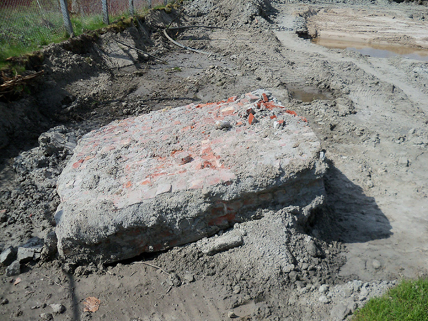 Das Tankfundament ist nun zu zwei Dritteln abgetragen. Selbst Teile des unteren Fundamentbereiches / untere Platte des Ringfundamentes wurden mittlerweile entfernt. Anscheinend werden die Gründungsholzpfähle an Ort und Stelle belassen. Fraglich ist ohnehin, in welchem Zustand die Pfähle nach etwa 100 Jahren heute mittlerweile sind.