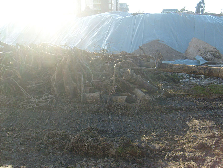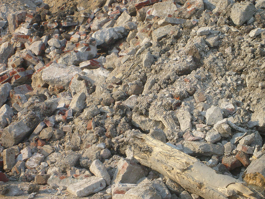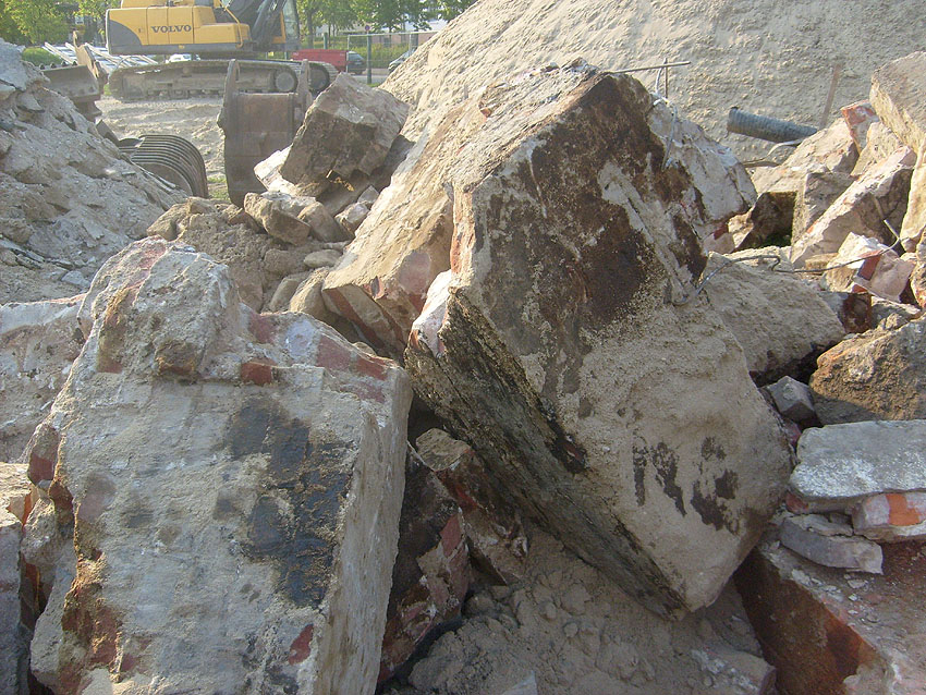 Die Abbrucharbeiten des Fundamentes nähern sich ihrem Ende und damit auch unsere Dokumentation über das Objekt. Die Gründungsholzpfähle, beziehungsweise das, was davon noch existiert, werden allem Anschein nach komplett im Erdreich belassen.