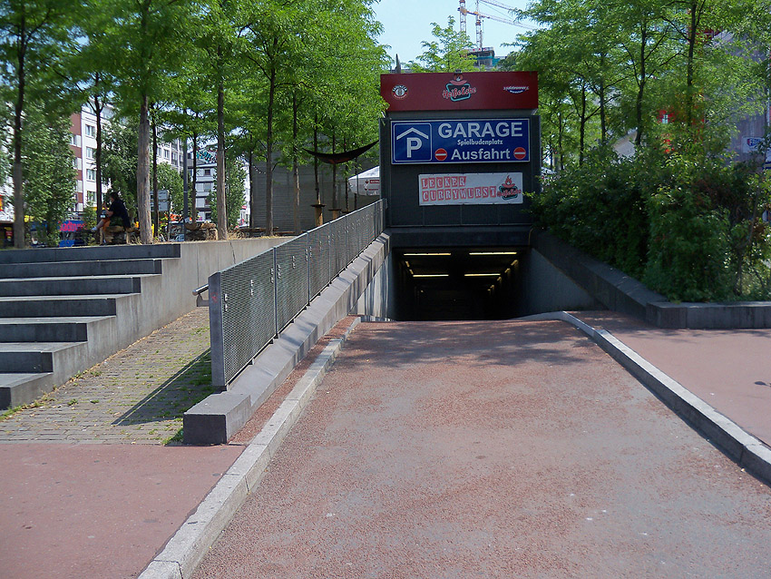Einfahrt zum ehemaligen Tiefbunker Spielbudenplatz Reeperbahn / heute Tiefgarage