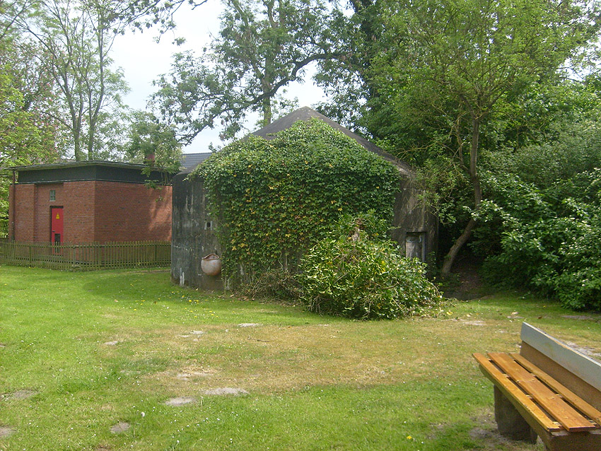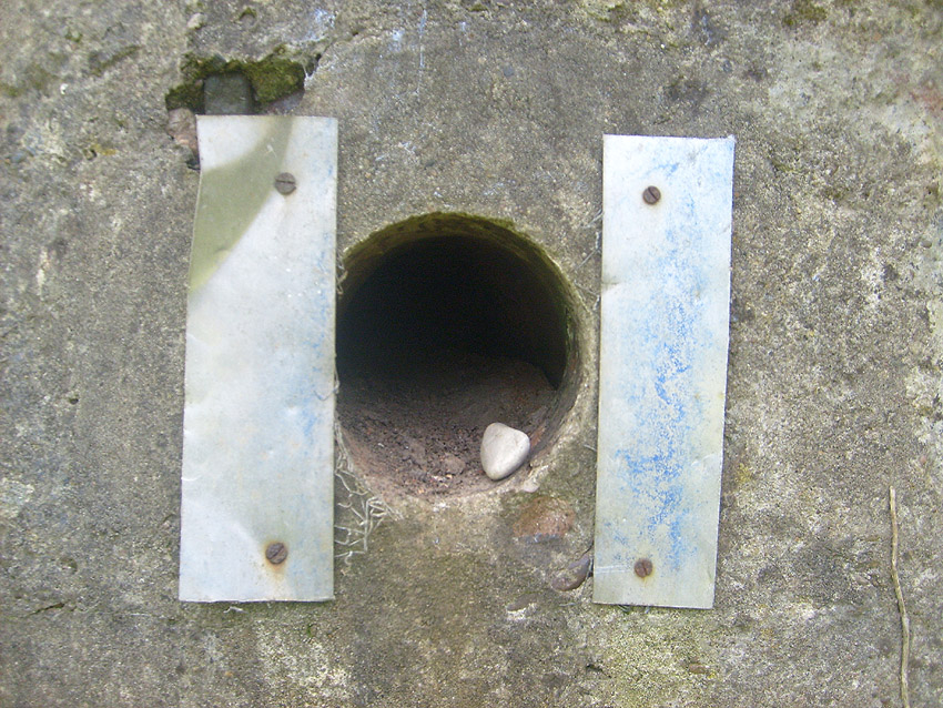 Dies muss der Notausstieg gewesen sein. Er scheint nach dem Krieg verschlossen worden zu sein. Es kann auch sein, dass der gesamte Betonblock nachträglich vor den Ausstieg gegossen wurde.