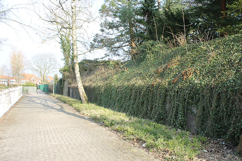 Stand August 2018: Die beiden betonierten Deckungsgräben der damaligen Grodenschule werden höchstwahrscheinlich doch erhalten bleiben. In einem Bebauungsplan sind sie - trotz Neubebauung dazwischen - weiterhin eingezeichnet. Aufgrund der immensen Abbruchkosten wird ein Abriss wohl glücklicherweise vermieden werden.