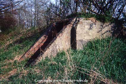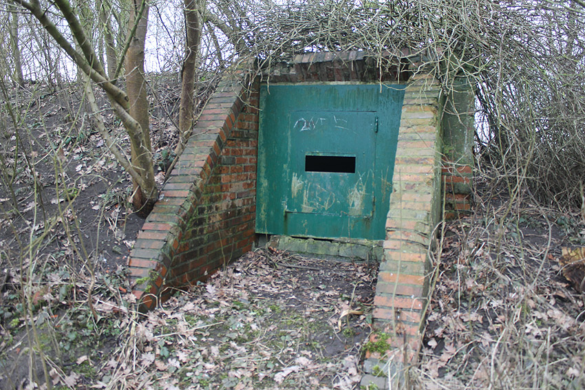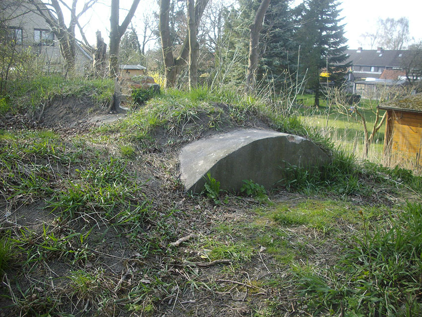 Nachtrag 11.03.18: Der letzte noch erhaltene Röhrendeckungsgraben Cäciliengrodens bestand eigentlich aus vier untereinander nicht verbundenen Betonrohr-Elementen. Drei davon sind noch heute fast komplett unversehrt erhalten. Das vierte Element könnte teilzerstört und zugeschüttet noch existieren. Eventuell wurde es aufgrund Baufälligkeit zugeschüttet. Denkbar wäre aber auch ein Bombenschaden mitten im Krieg.