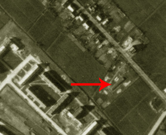 Die hellen Flächen ringsum das Objekt erinnern an Bettungen leichter Flakstellungen. War hier eine derartige Stellung zum Kriegsende als Schutz für das Lager Neufeld und den Ort Sande stationert?