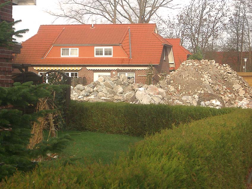 Wir kamen zu spät! Zusammen mit dem gesamten Gebäudebestand der Firma "Blumen Fass" wurde für uns völlig überraschend Ende November bis zum 4. Dezember 2006 der kleine Bunker auf dem Grundstück dem Erdboden gleichgemacht.